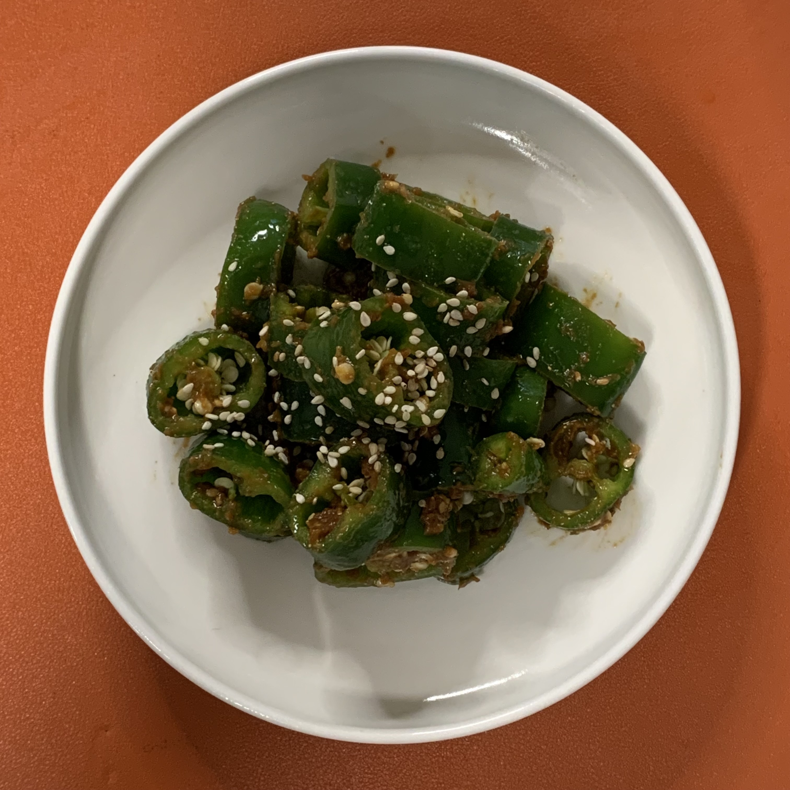 저는 아무래도 강된장만해서 만들어먹기에 뭔가 시원하게 씹고(?) 싶더라고요 ㅋㅋㅋ! 그래서 아삭이 고추를 이용한 된장무침도 만들어봤는데 아주 궁합이 최고입니다!