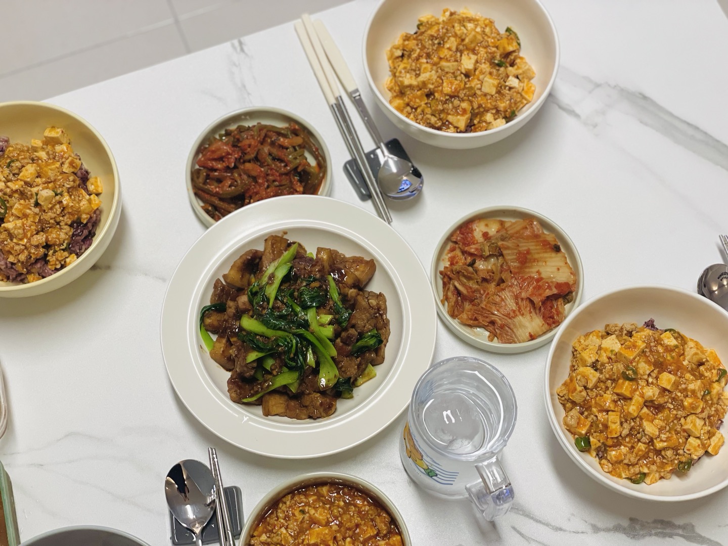 아차차 마트에서 만난 이웃을 우리집으로 초대해서 4인분을 만들어 보았어요!!!!ㅎㅎㅎㅎㅎ 마트에서 마파두부 소스도 1봉 더 사왔답니다 ㅎㅎ!