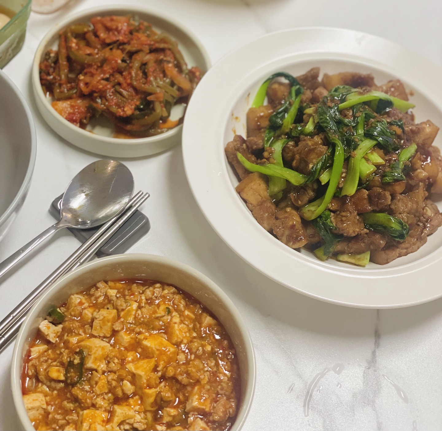 원래는 마파두부만 하려고 했는데, 마트에서 만난 이웃이 우리 집에 놀러온다는 말에 '동파육도 도전해볼까?' 하는 생각에 삼겹살과 청경채를 사왔습니다 ㅎㅎㅎ 단순한 이유로 마라는 안 좋아하고, 동파육도 재료가 간단해서 도전해보기 좋을 것 같더라구요!