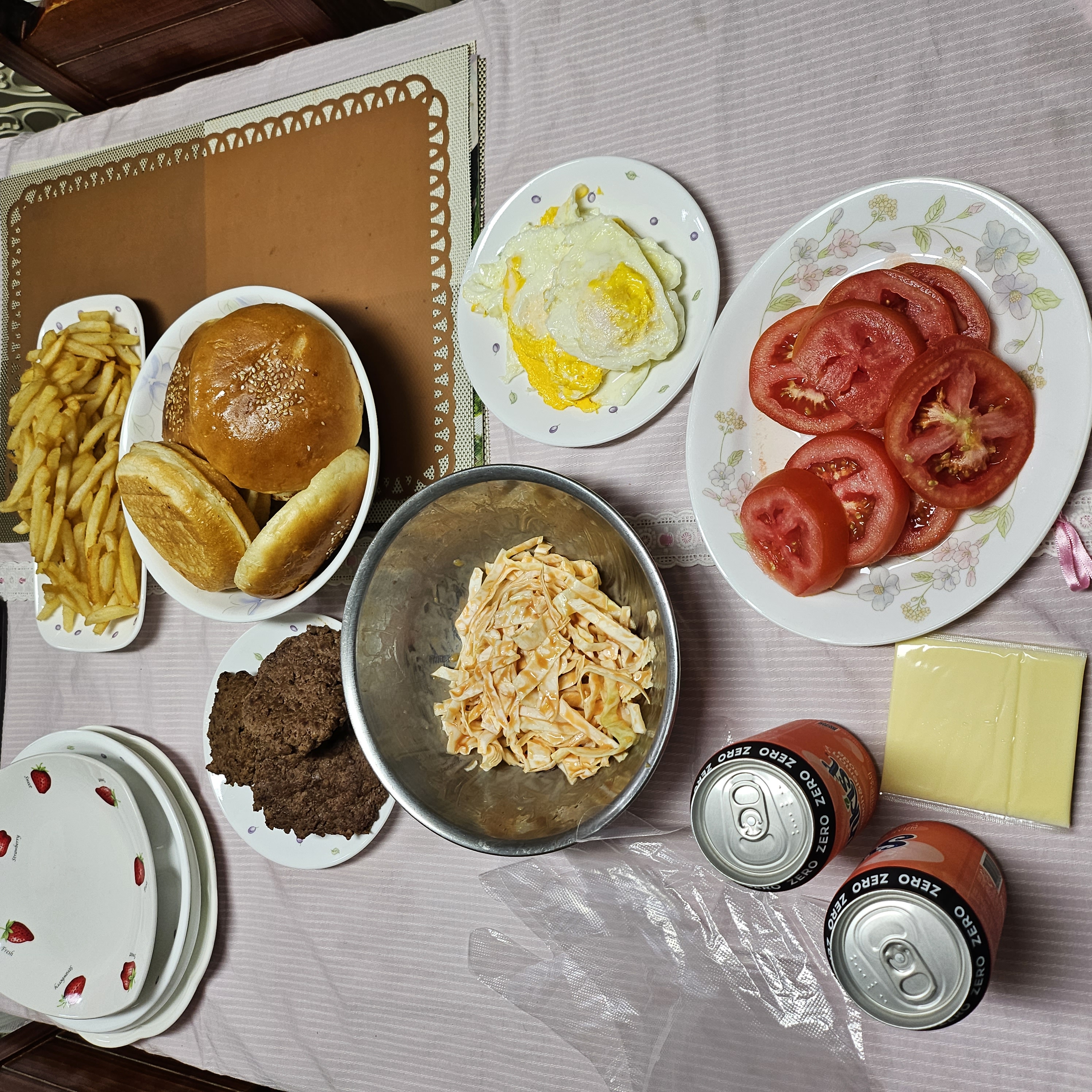 5.식탁위에 햄버거재료를 준비한 뒤