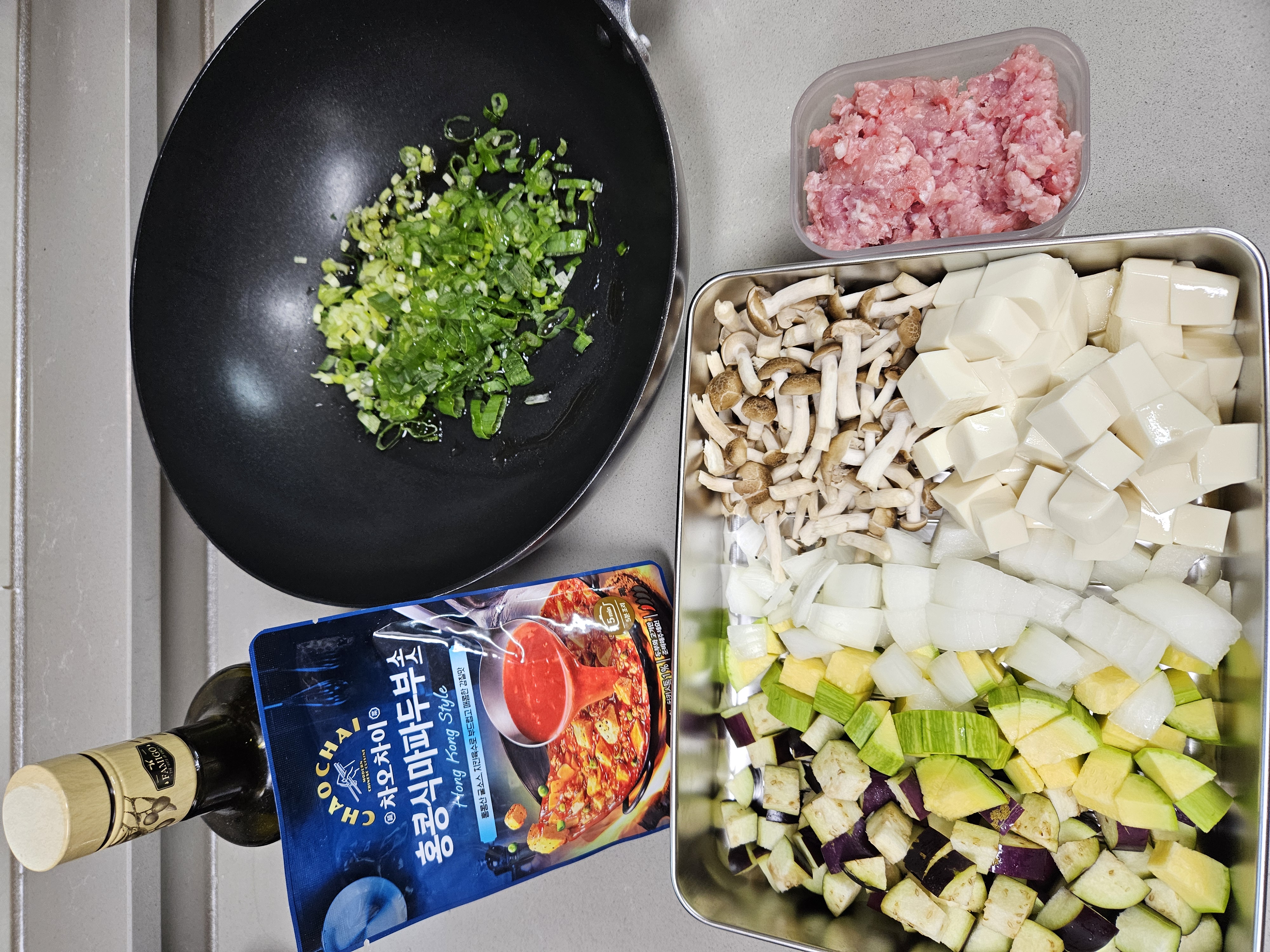 양파 1/2개, 애호박 1/2개, 만다리버섯 1봉지,