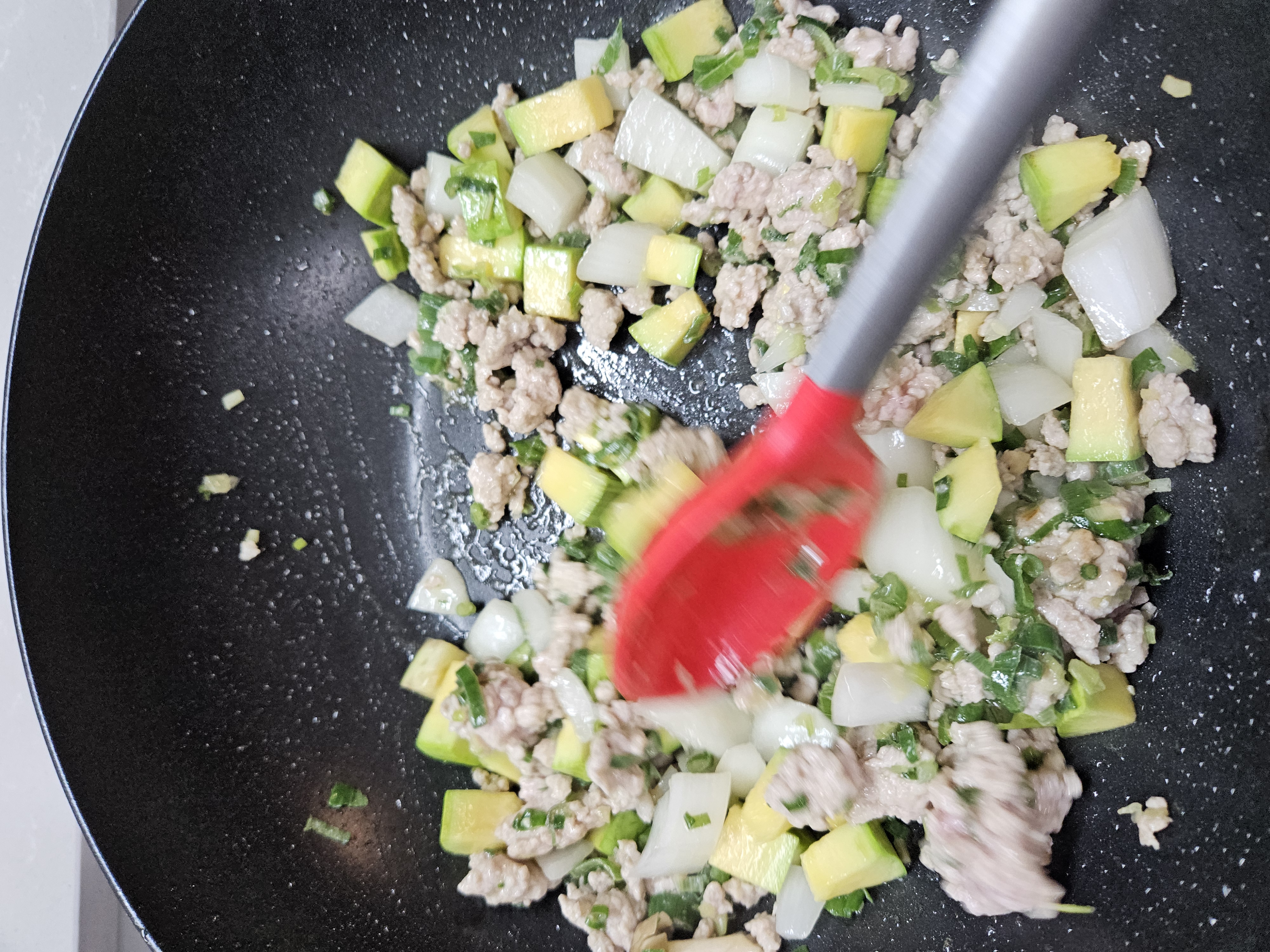 2. 맛술 2숟푼 넣고 갈아둔 돼지고기를 넣어 볶아준다