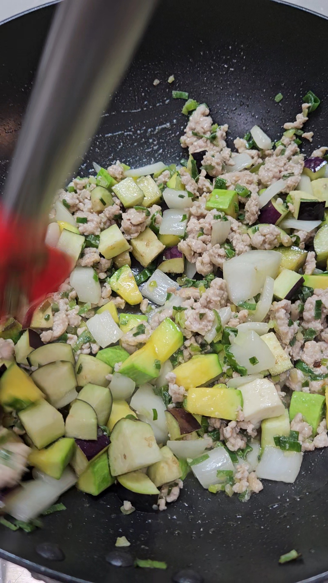3. 양파, 애호박, 가지, 버섯 순으로 넣어 볶아 익혀준다