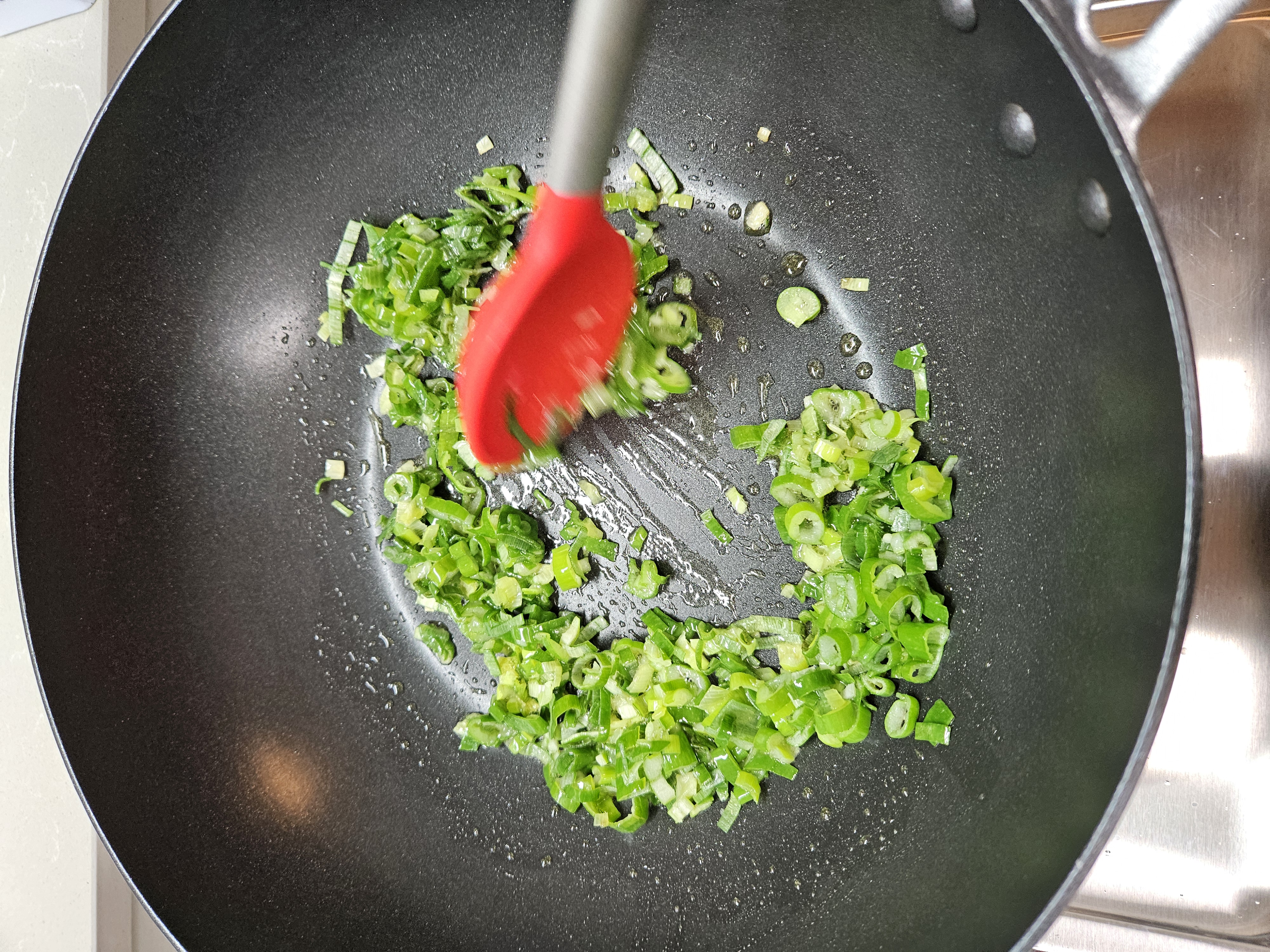 1. 다진 대파 1컵(종이컵) 분량을 올리브유에 볶아 파기름을 내어준다
