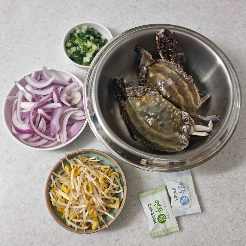 재료 : 꽃게, 양파, 대파, 콩나물, 다데기양념, 국물용 연두링