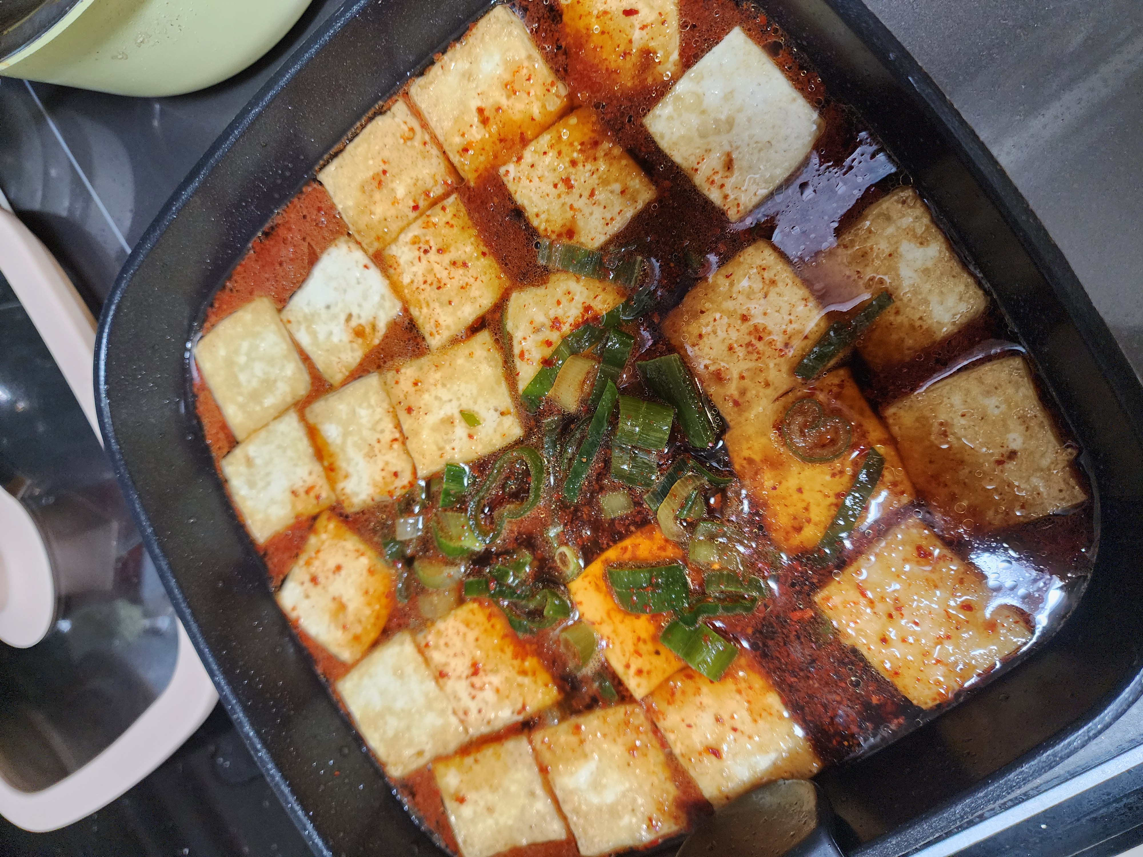 두부부침에 양념 부은 후 연두링 넣어서 같이 끓이면서 녹였어요> <
