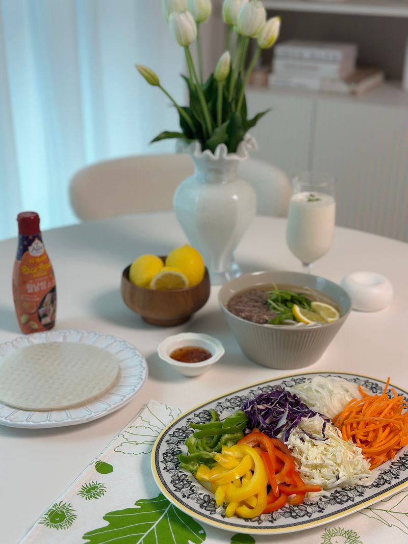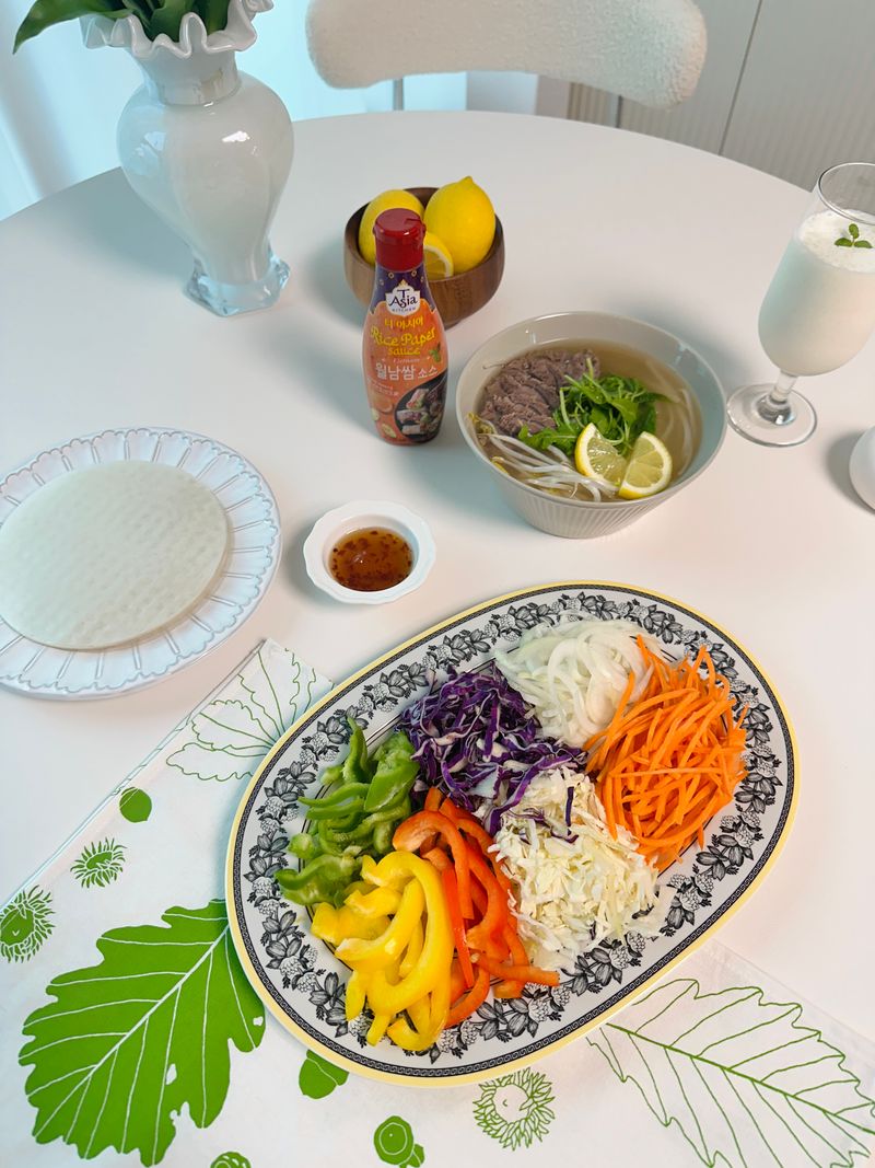 집에 남아있는 야채나 고기로 월남쌈을 해 드시면 냉장고 털이 하기 좋은 메뉴에요. 티아이사 월남쌈 소스는 쌀국수의 고기도 월남쌈도 찍먹하면 현지 느낌 나는 소스예요.