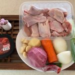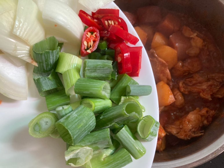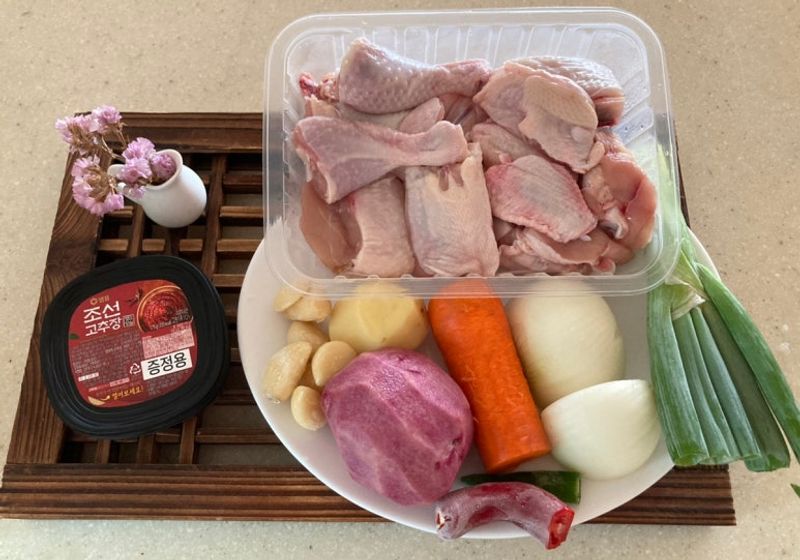 - 닭1마리,감자2개,당근1/2개,양파1개,대파1/2개,통마늘7개