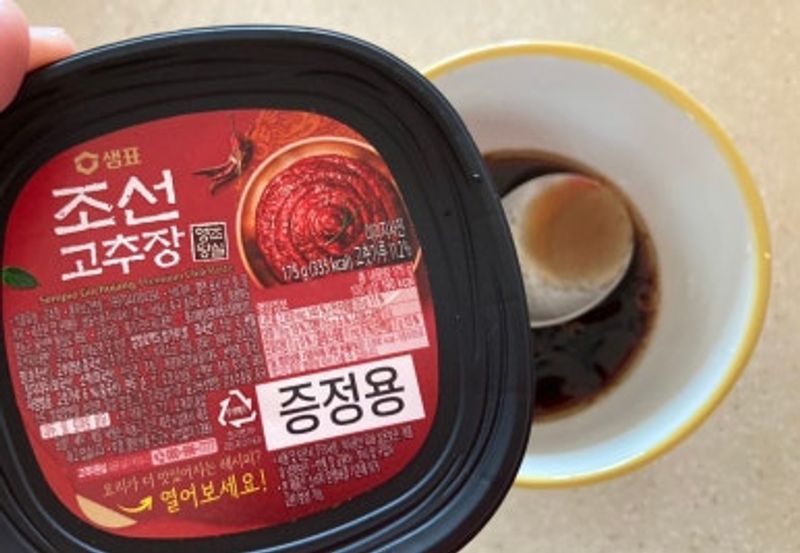 - 고춧가루3스푼,물5스푼,새미네부엌진간장2스푼,조선고추장10스푼 참기름1스푼,설탕2스푼,후추약간