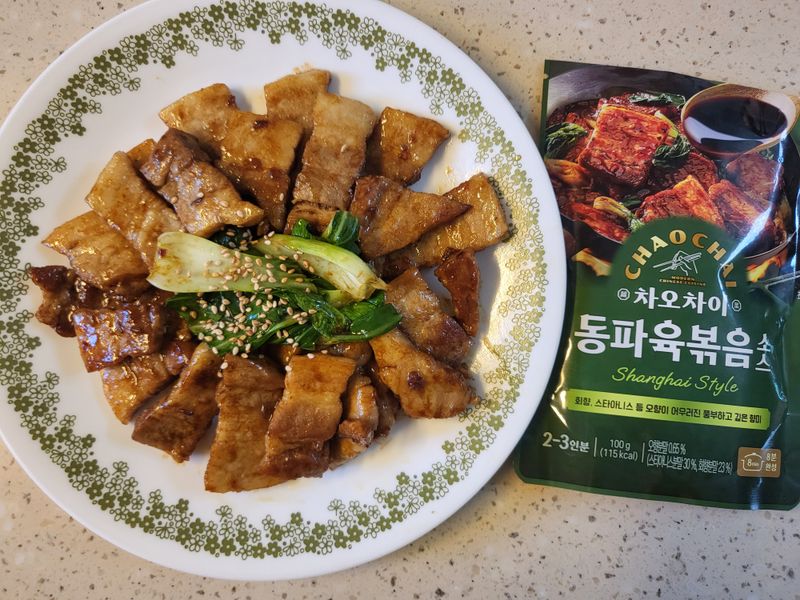 삼겹살 구워먹는게 지겹다면? 차오차이 동파육볶음 소스로 중식맛집 변신해요 삼겹살 굽다가 소스넣어 볶고 청경채 추가해 30초 더볶아주면 끝! 아이가 진짜 맛있대요!!
