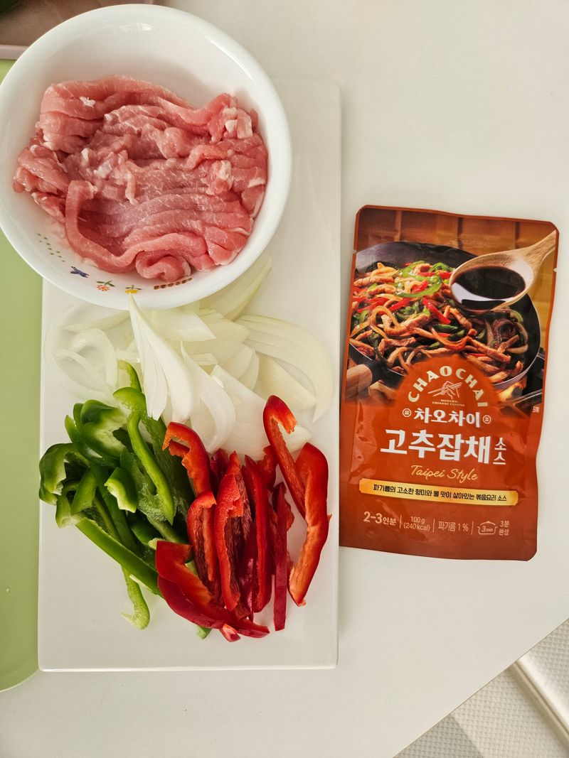 차오차이 고추잡채소스를 활용해서 고추잡채를 요리해봤다.