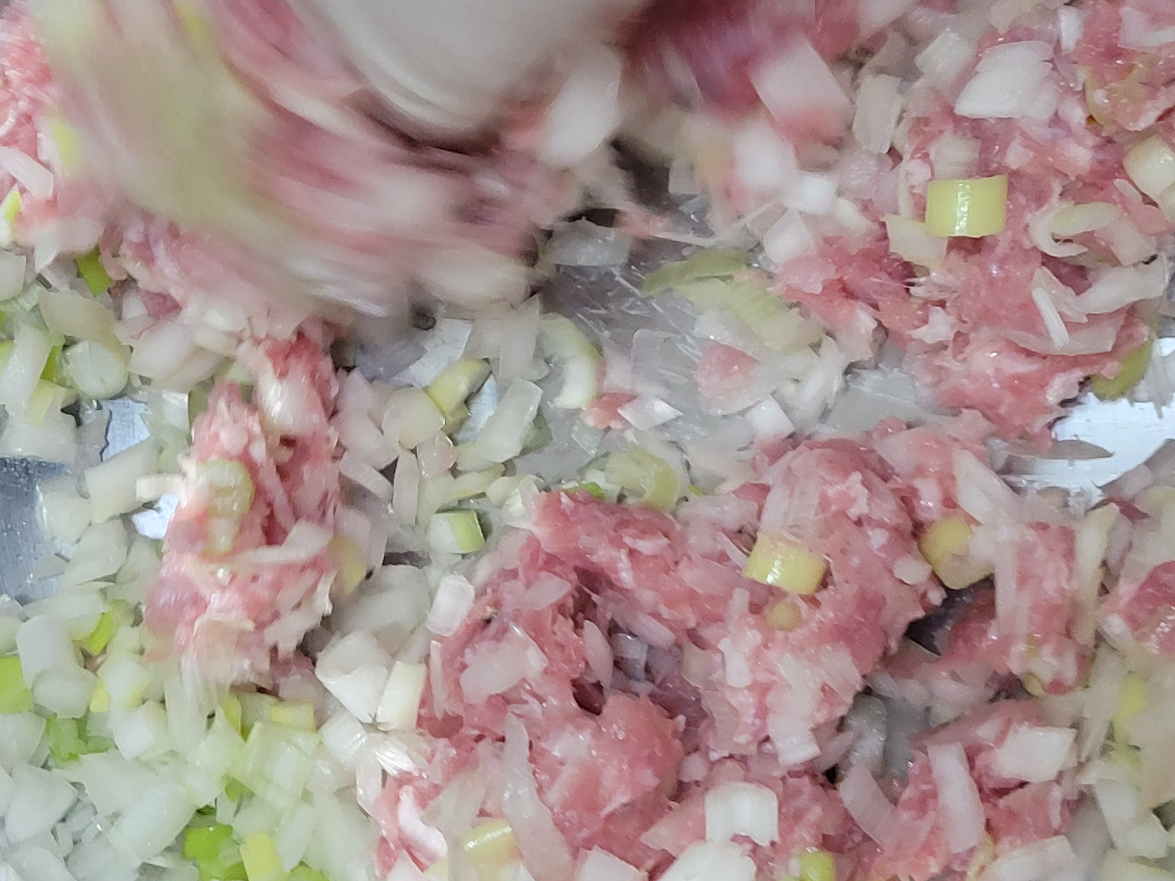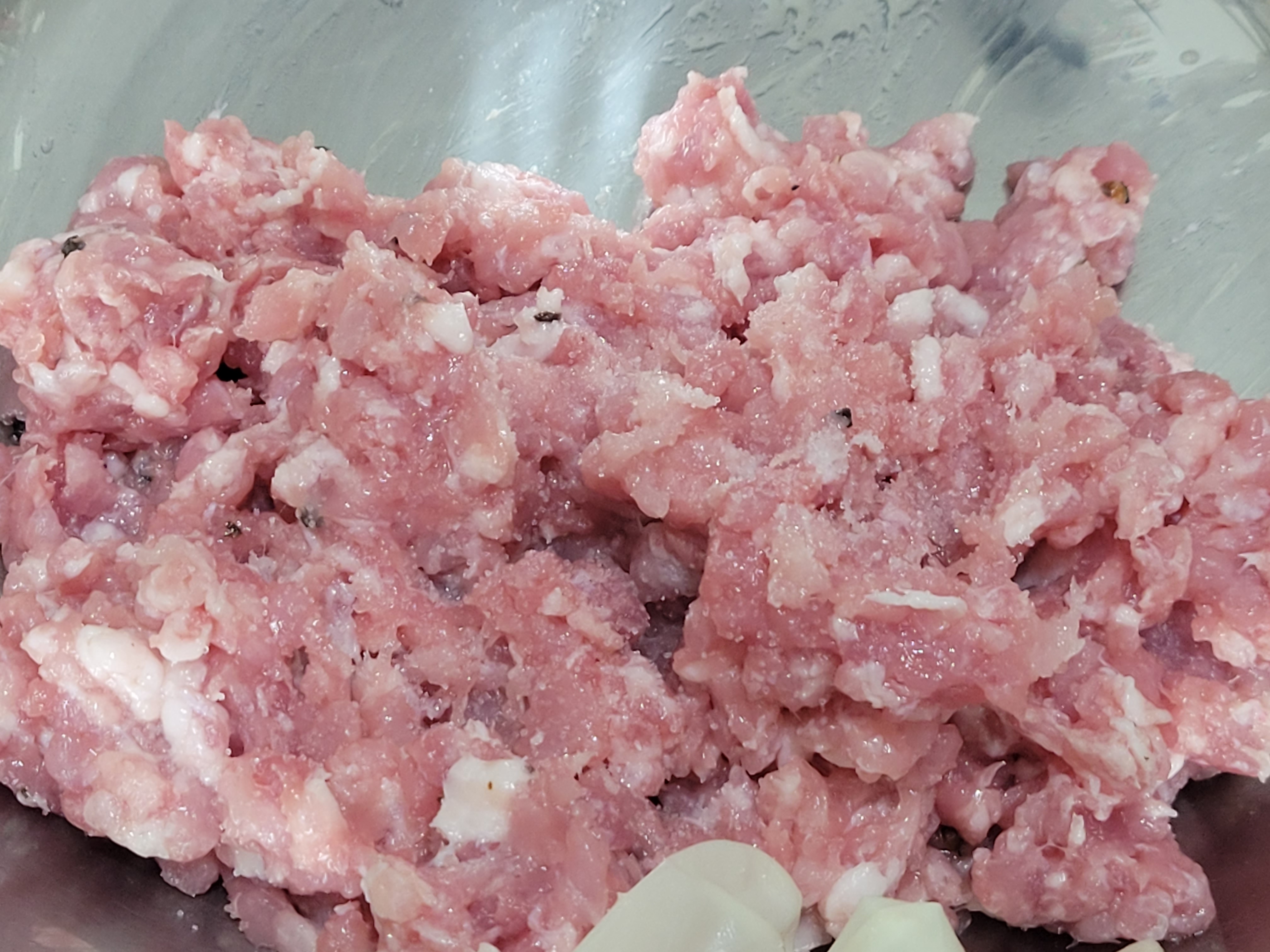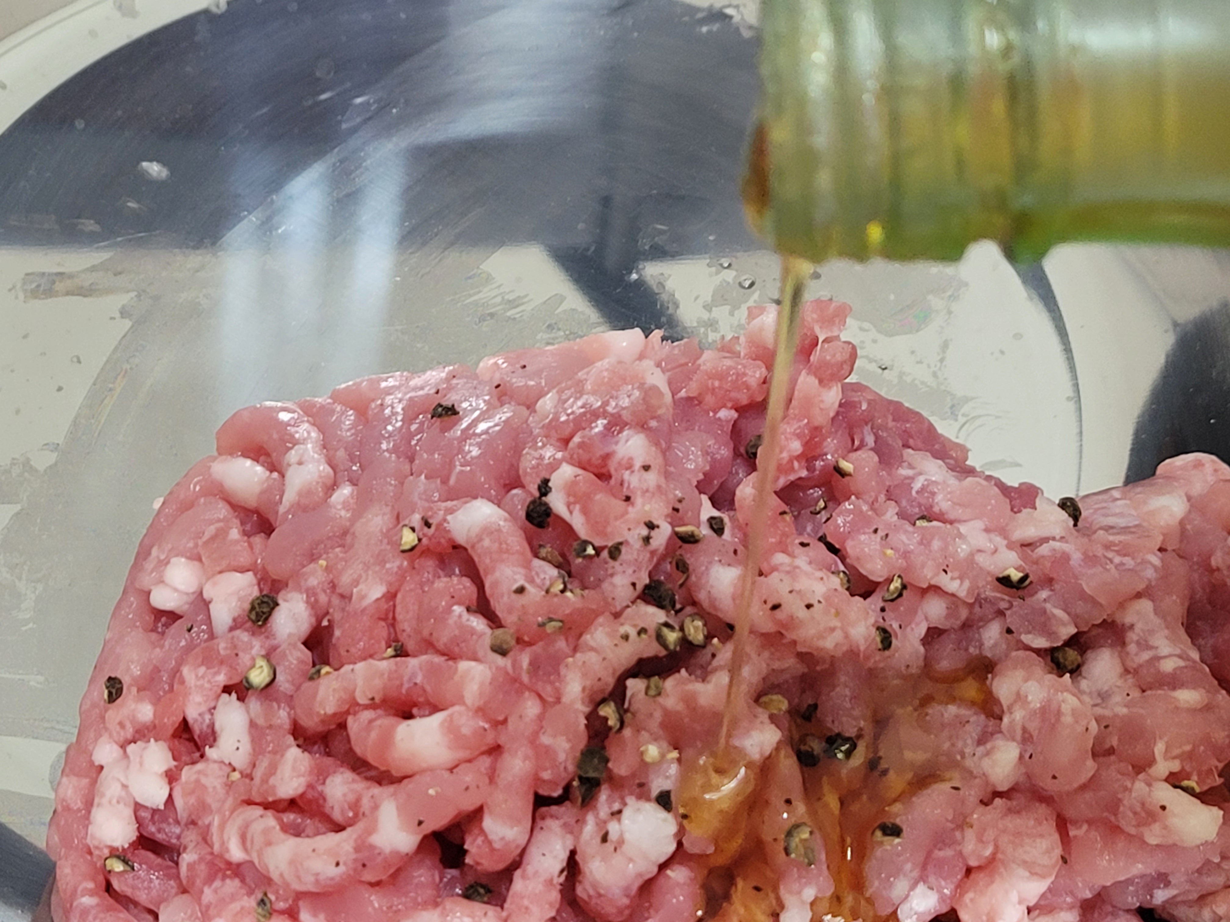 다진 돼지고기에 소금, 후추, 참기름으로 밑간을 해준다