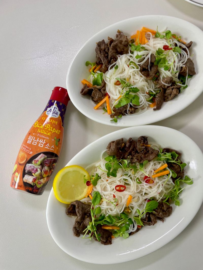 6️⃣ 버미샐리면, 고기, 채소를 그릇에 담은 후 기호에 맞게