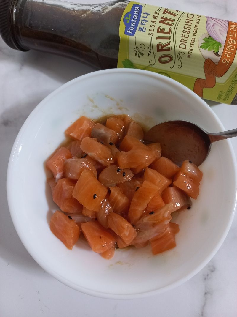 폰타나 오리엔탈 드레싱으로 새미네부엌 레시피에 올라온 알로하 건강 포케 만들어봤어요.