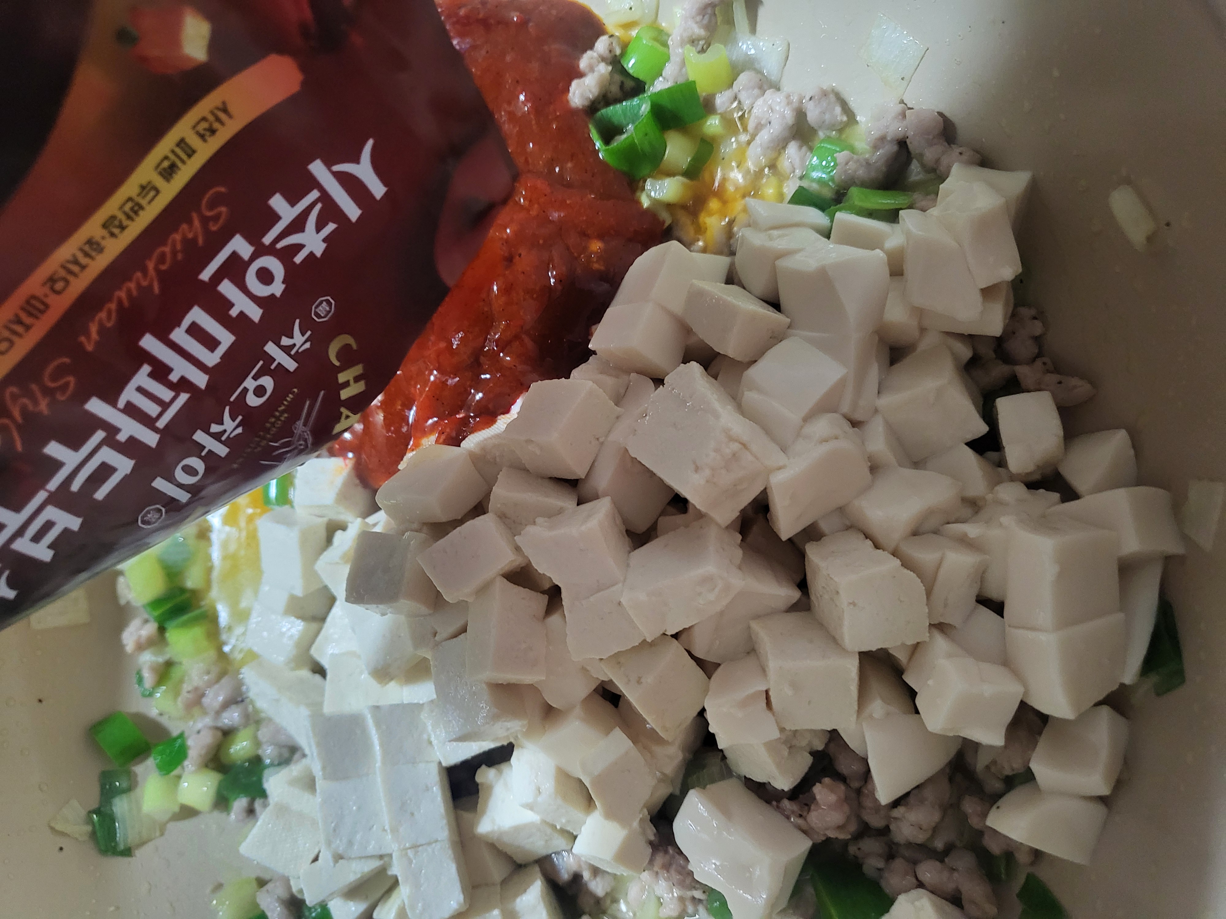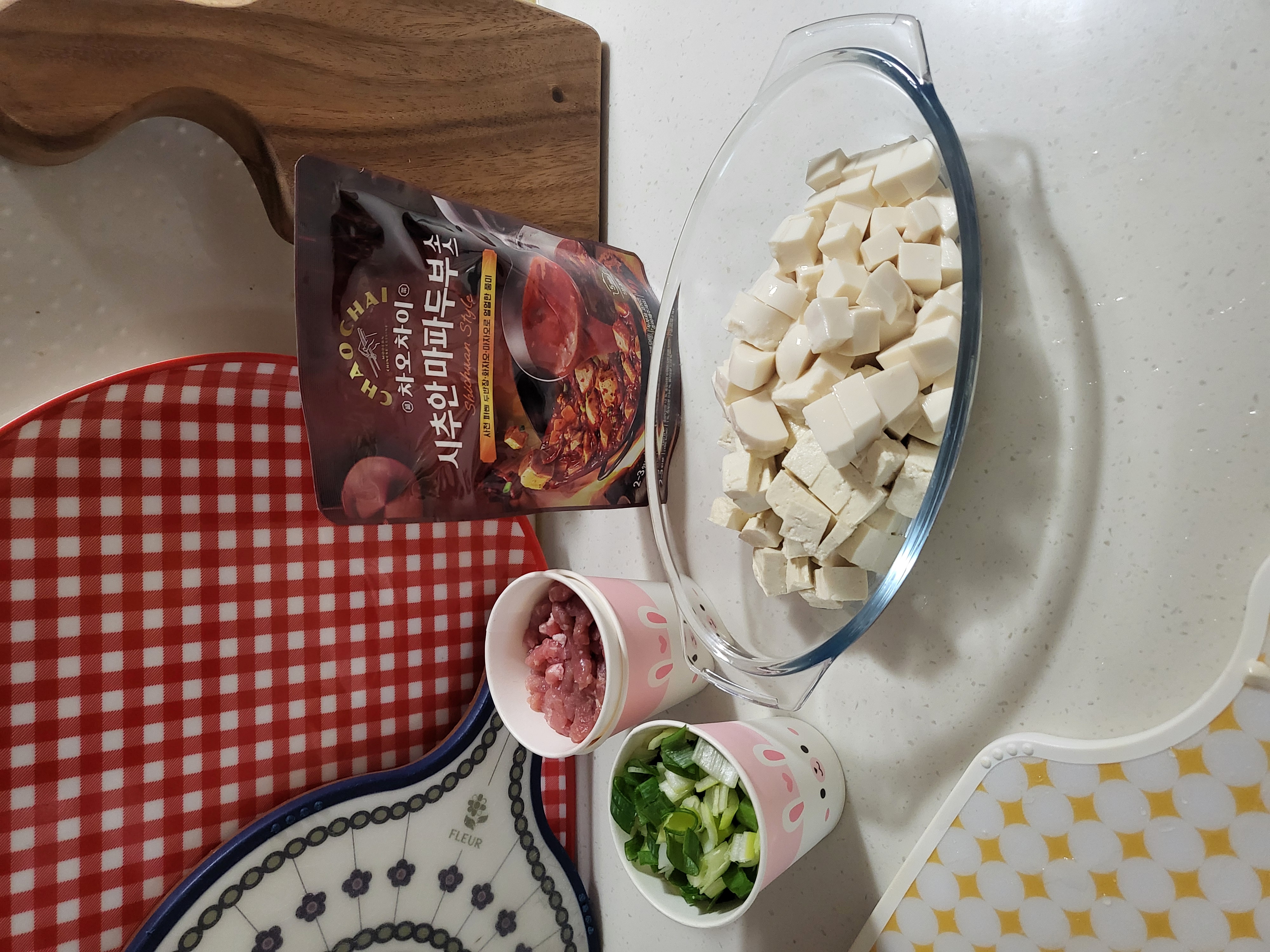(두부.다진돼지고기.대파.식용유.시추안마파두부소스)