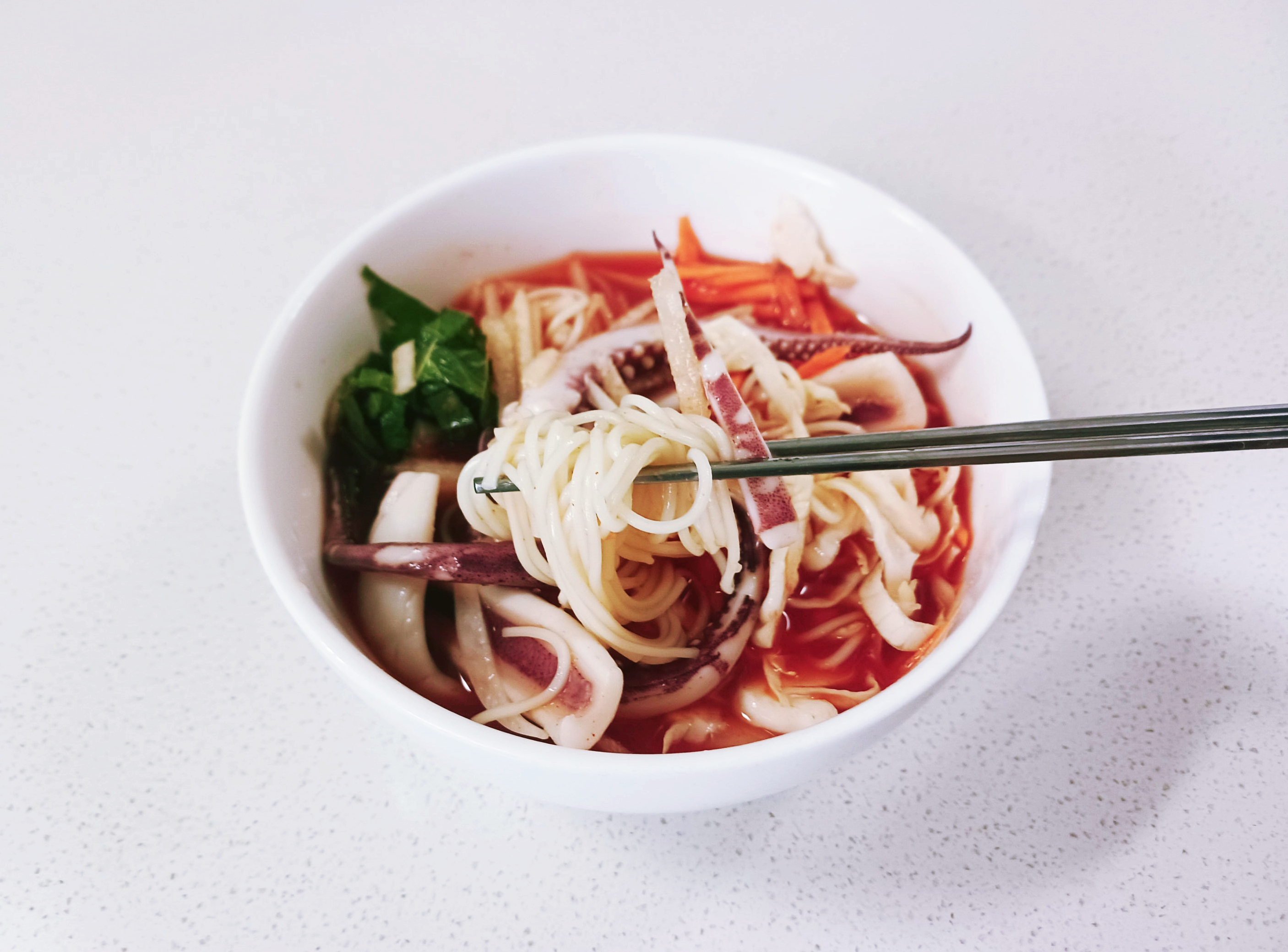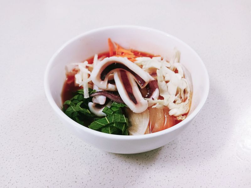 [재료] : 오징어 1마리, 소면 한 줌,