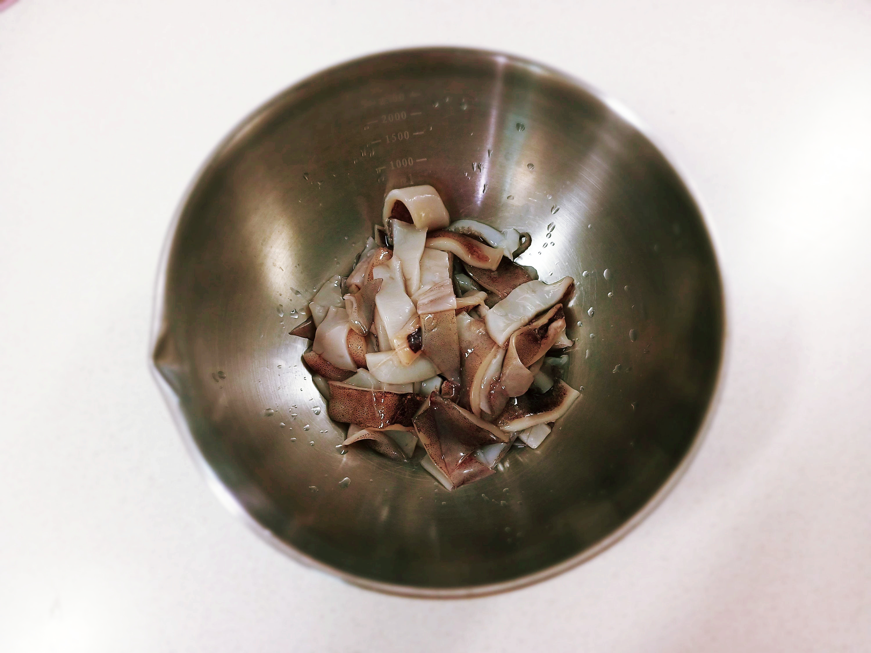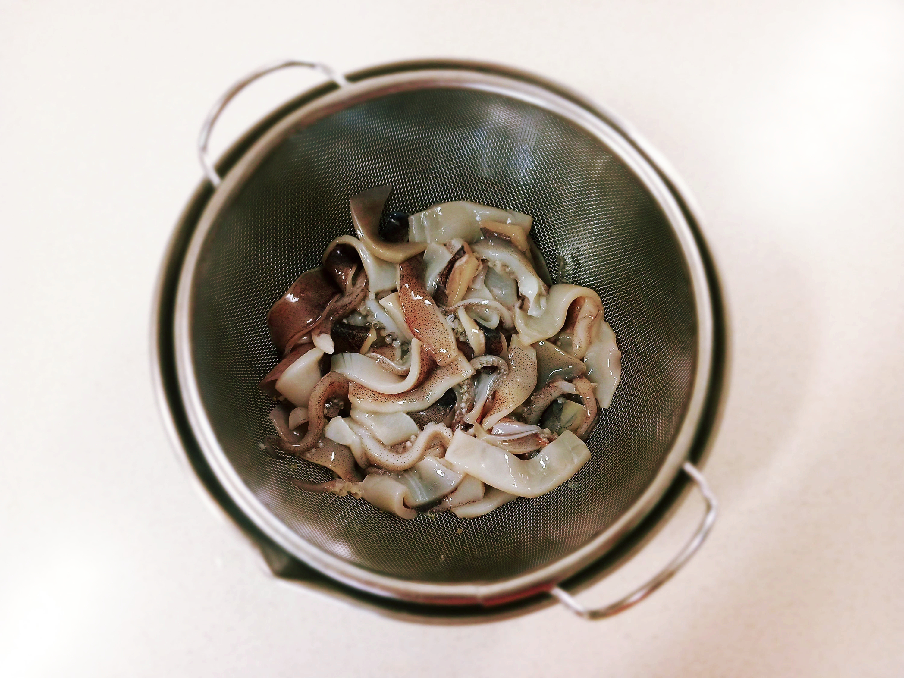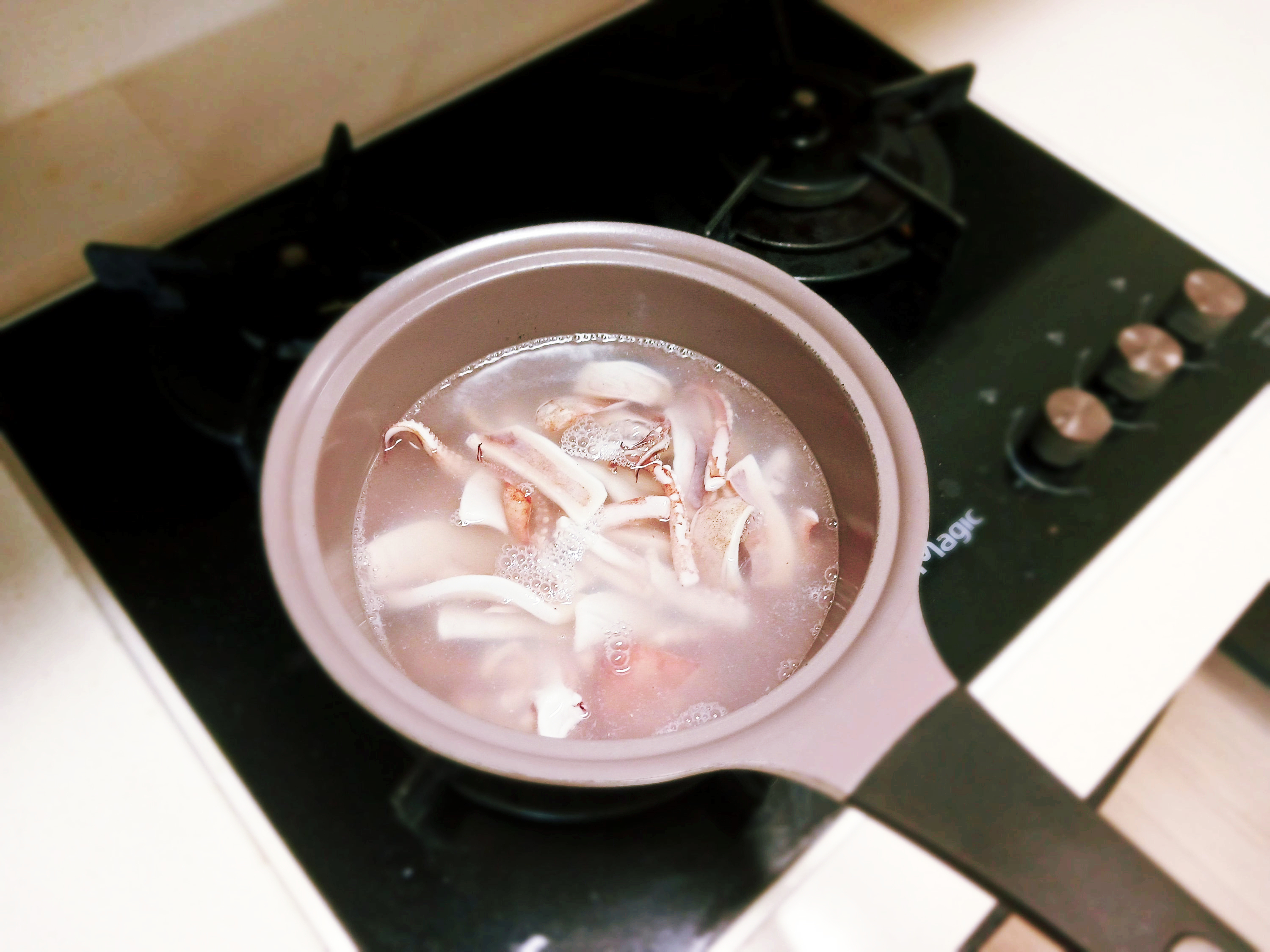 오징어를 데칠 때에는 팔팔 끓는 물에 먼저,