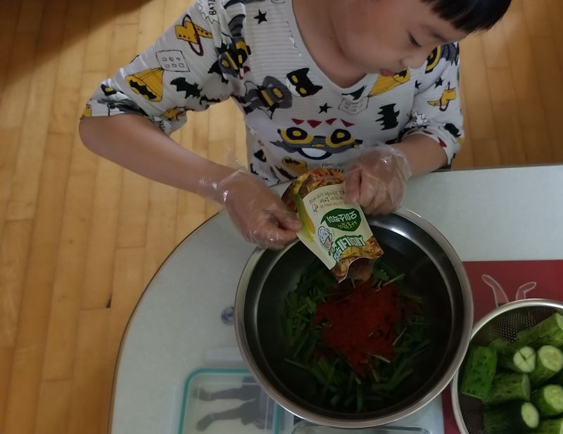 양념을 너무 많이 넣으면 오이소박이가 짤 수 있으니 적당히 넣어요.