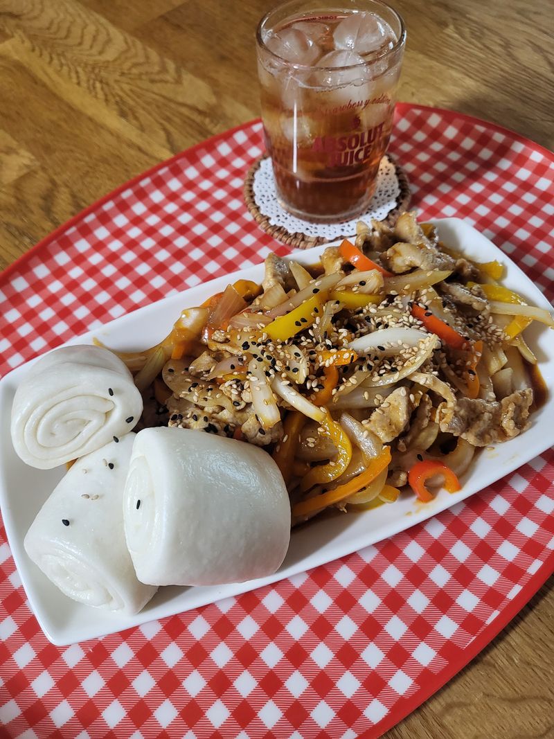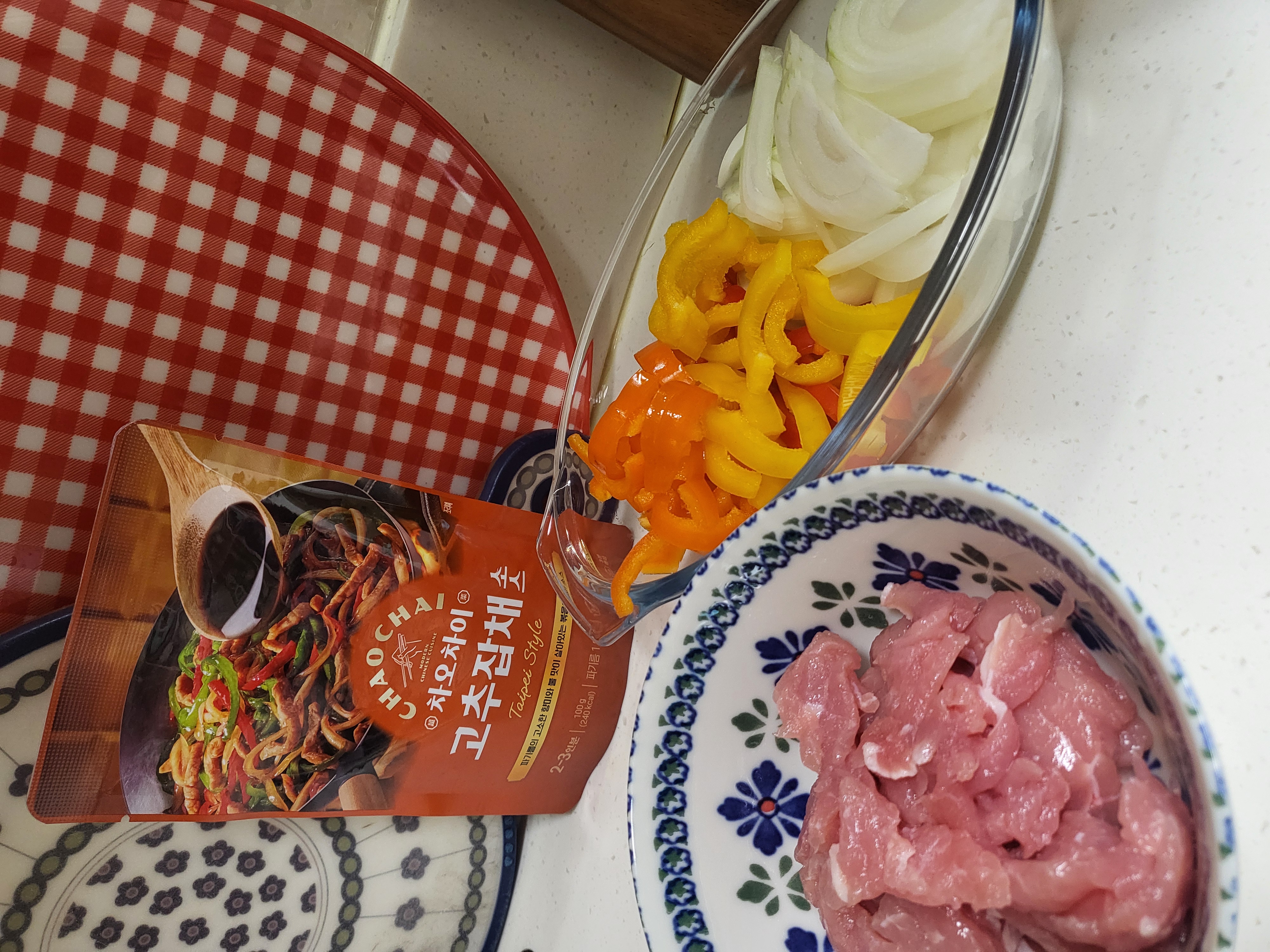 즐요클럽 덕분에 간단하게 고추잡채를 뚝!딱! 요리 해 보았어요 꽃빵에 곁들이니 순.삭.이네요^-^ 재료는 양파.파프리카.잡채용 돼지고기.고추잡채소스 간단한 재료로 특식을 즐겨보세요 소스만 있으면 누구든 쉐프님이 된답니다