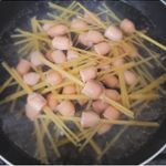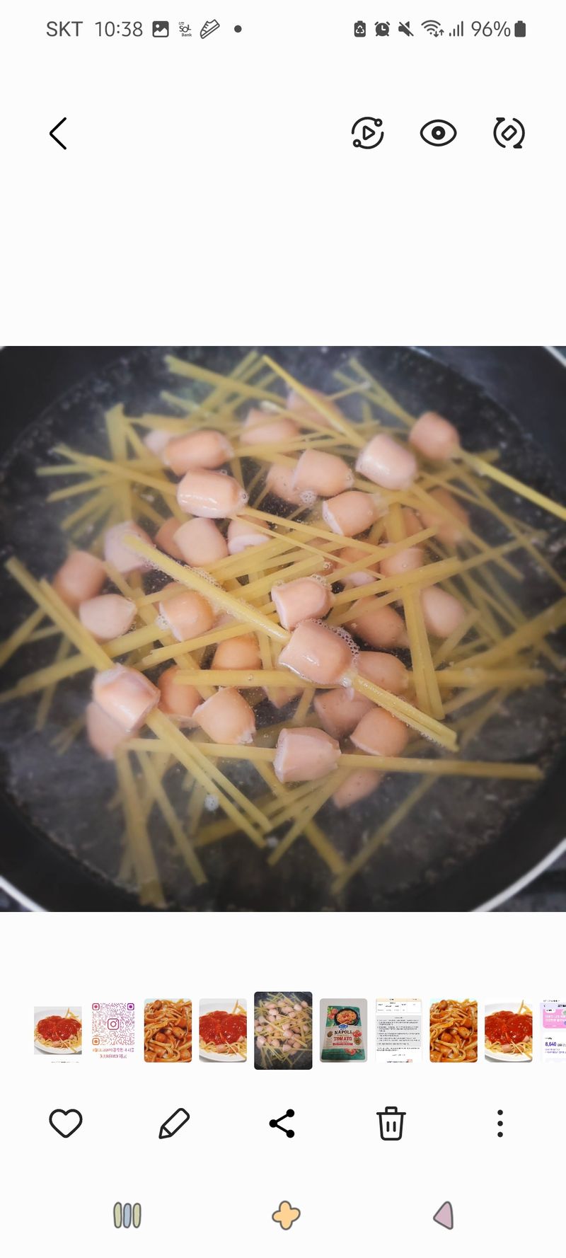- 2L 끓는 물에 소금 한 꼬집 넣고 8분간 소시지 파스타면 삶아주기