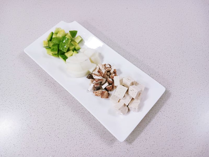 [재료] : 두부 1/3모, 표고버섯 2개, 애호박 1/4개,