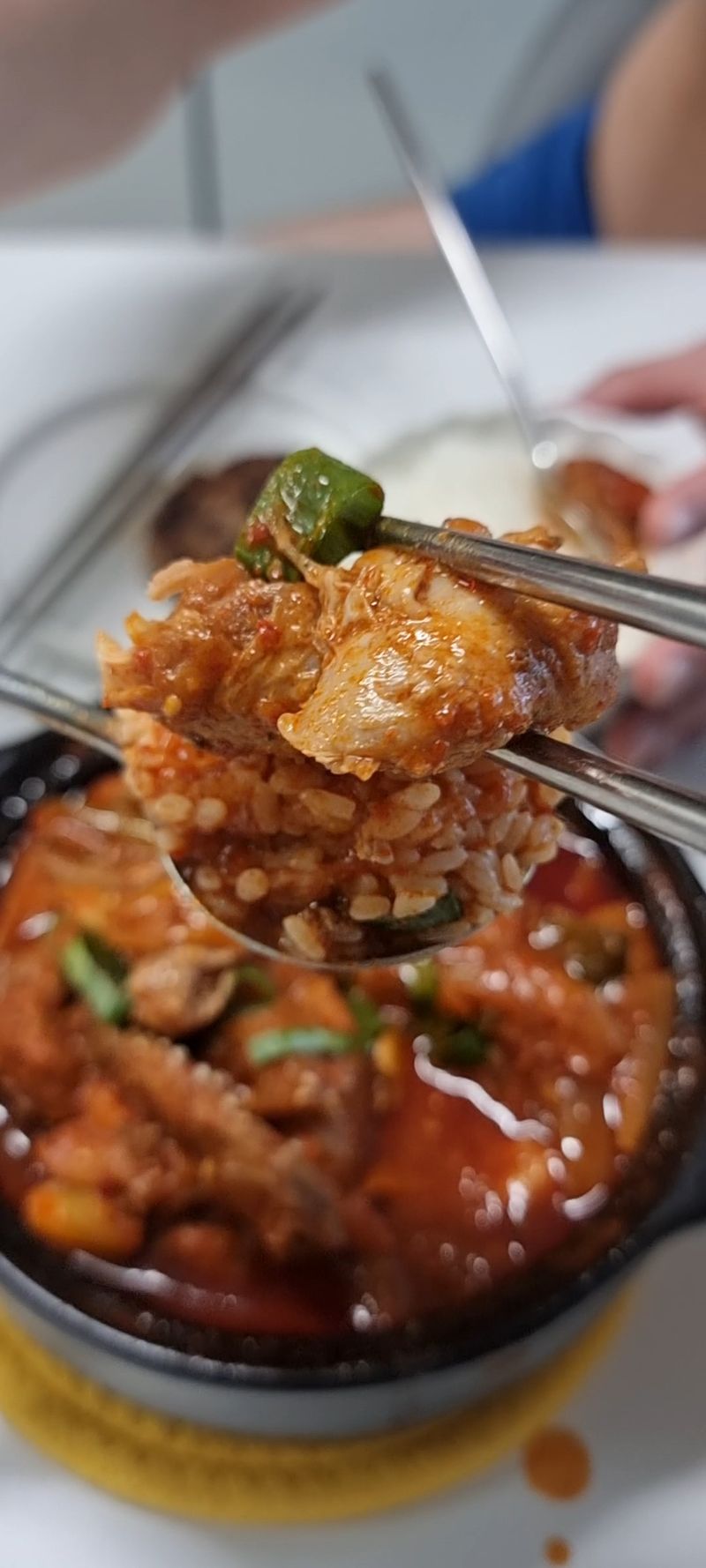 특히 샘표 조선 고추장으로 만들어 국물 맛이 깊고 진하고 약간의 매콤한 것이 안주로도 알맞을 거 같아요