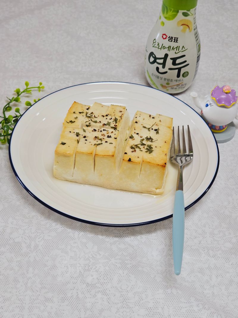 1.두부는 가로 세로 칼집을 내주는데 다 자르지말고 반만 자르기 2.칼집 사이사이에 연두를 넉넉히 뿌리고 오일과 후추 뿌리기 3.에어프라이기 200°C에서 20분간 구워주기 기름도 튀지않고 간단한데 연두의 감칠맛으로 두부구이가 정말 맛있어요!!