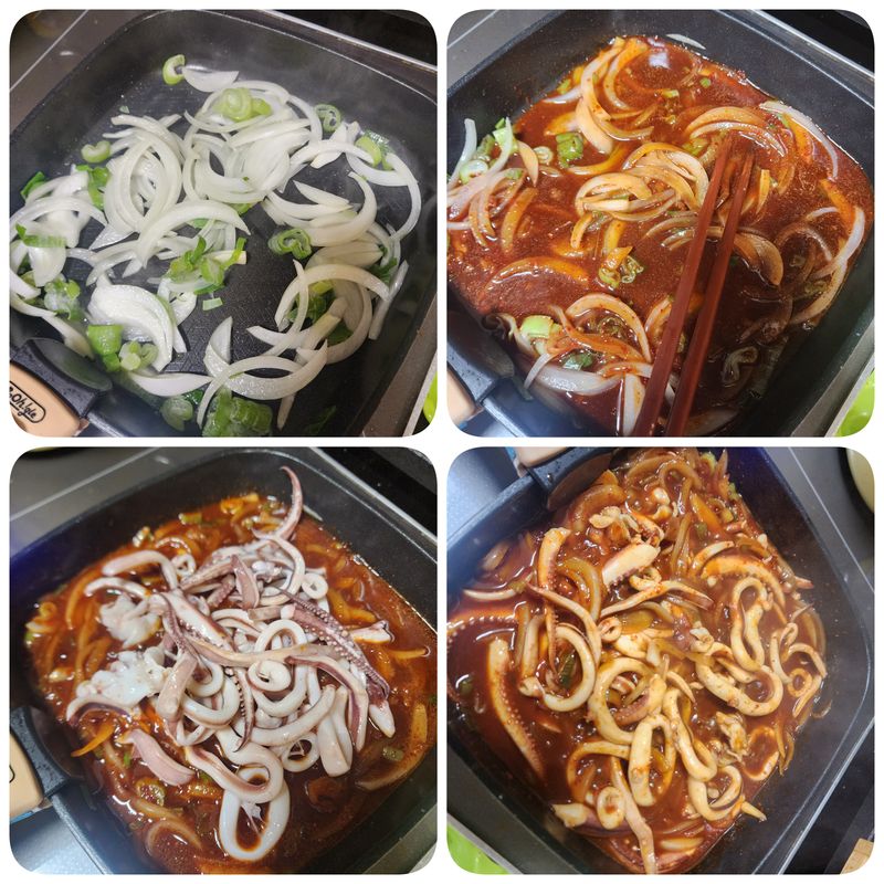 저희 인생 첫 오징어 볶음> <