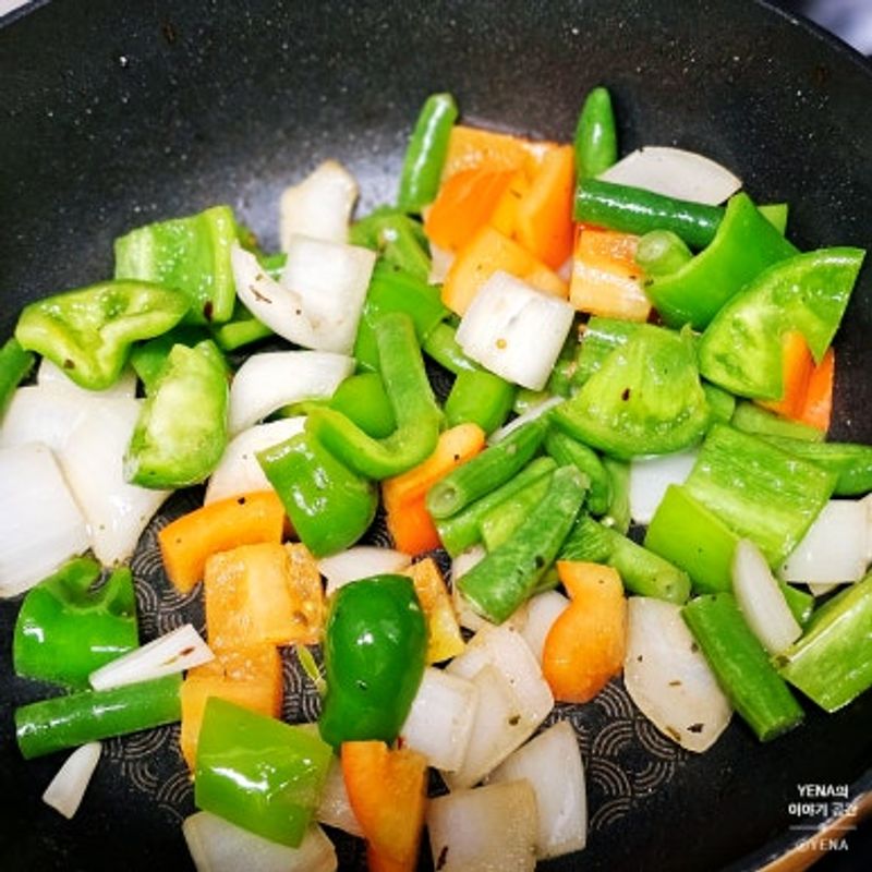 재료들을 볶아주기만 하면 되니까 간단해요.