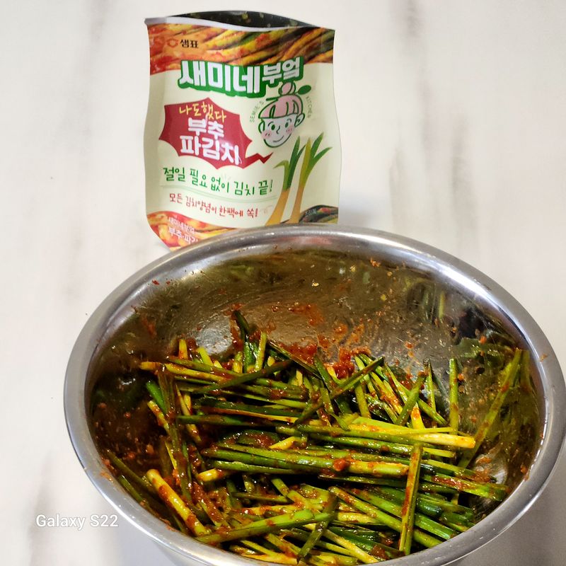 이런 저도 새미네부엌 양념장과 재료만 있으면 김치 순식간에 완성이네요 ㅎㅎ 수육이랑 함께 먹으면 더더 맛있는 부추김치 만들었어요. 양념장에 부추 씻어서 버무리기만 하면 되니깐 꼭 한번 도전해 보세요.