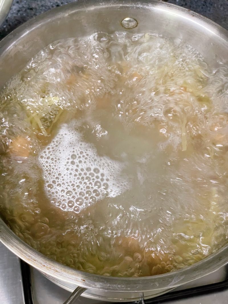 끓는 물에 소금을 넣고, 소시지 파스타를 넣어 8분동안 삶아 주세요