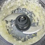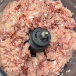 푸드프로세서에 소고기와 돼지고기를 갈아 줍니다