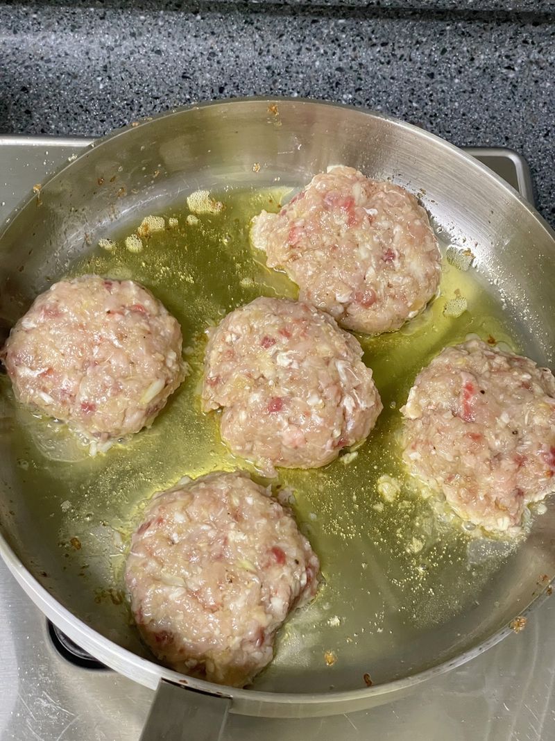 식용유를 조금 더 추가하여 함박스테이크를 골고루 익혀 줍니다