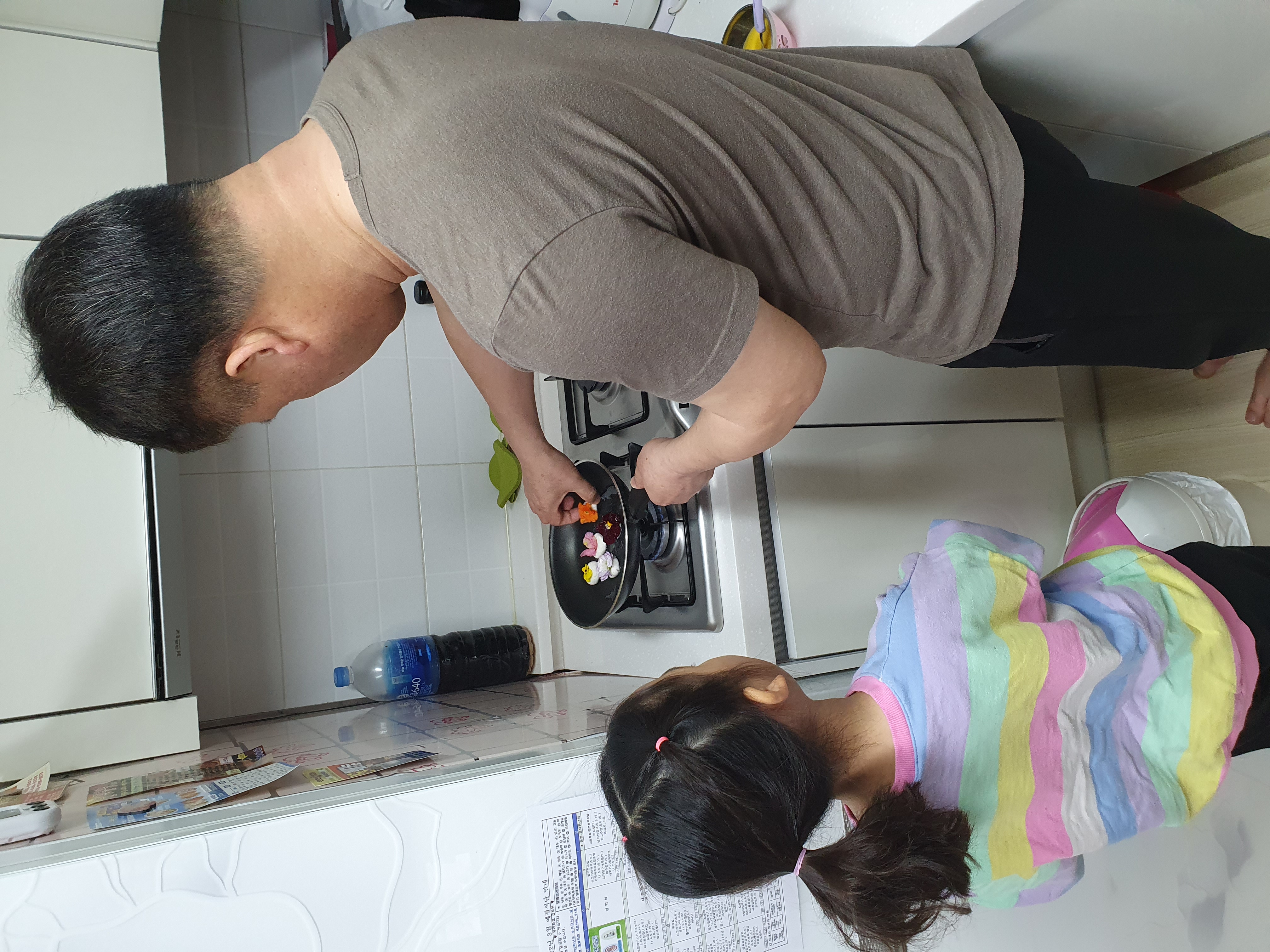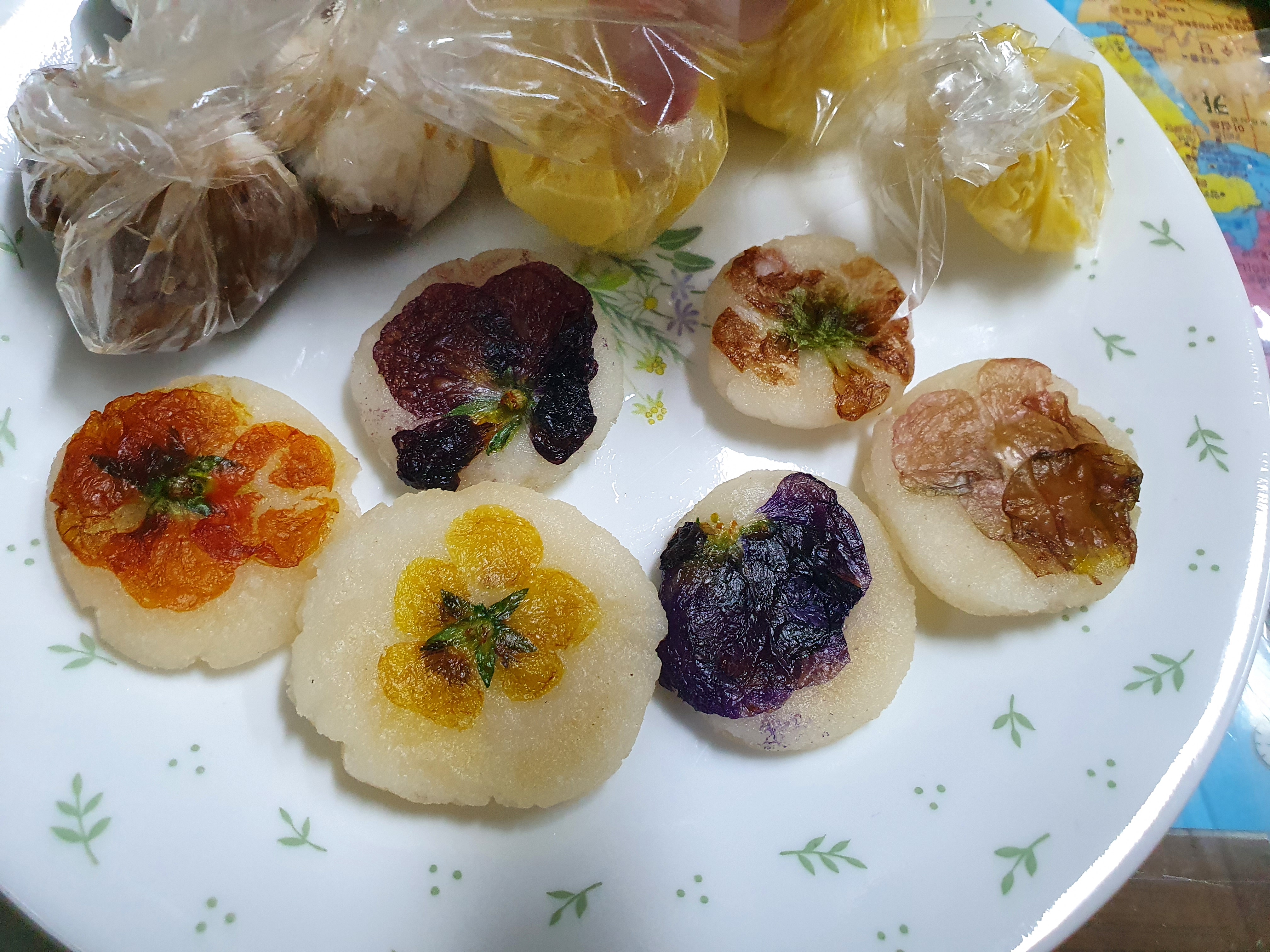 아빠와 함께 화전도 만들고 주먹밥도 만들었어요