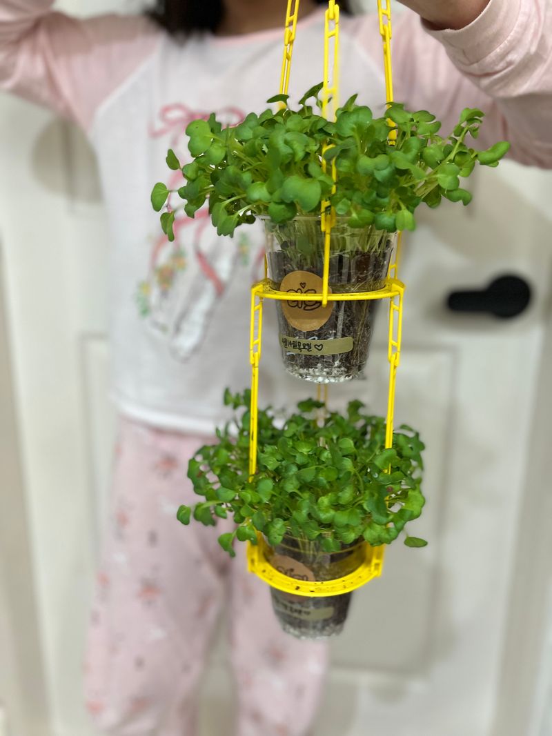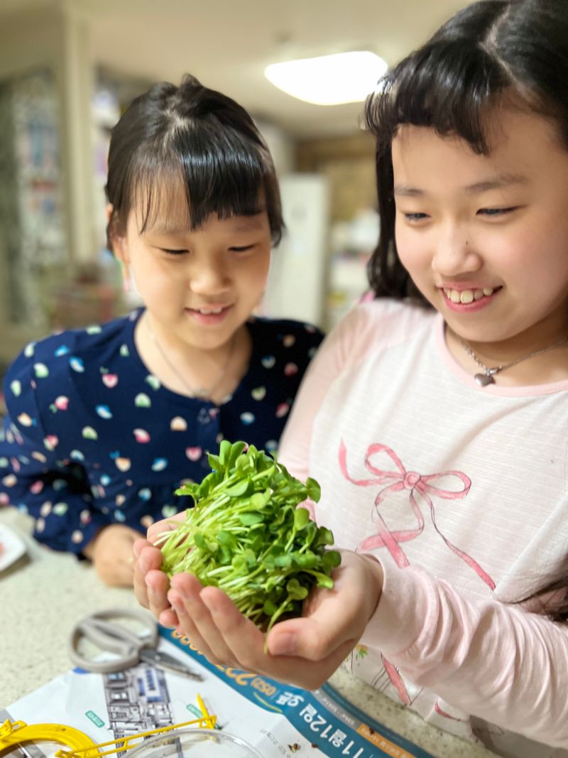 큰 아이가 학교에서 가져온 씨앗으로 집에서 직접 무순을 키웠는데,