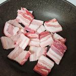 일! 팬을 예열한 후 삼겹살을 굽는다.