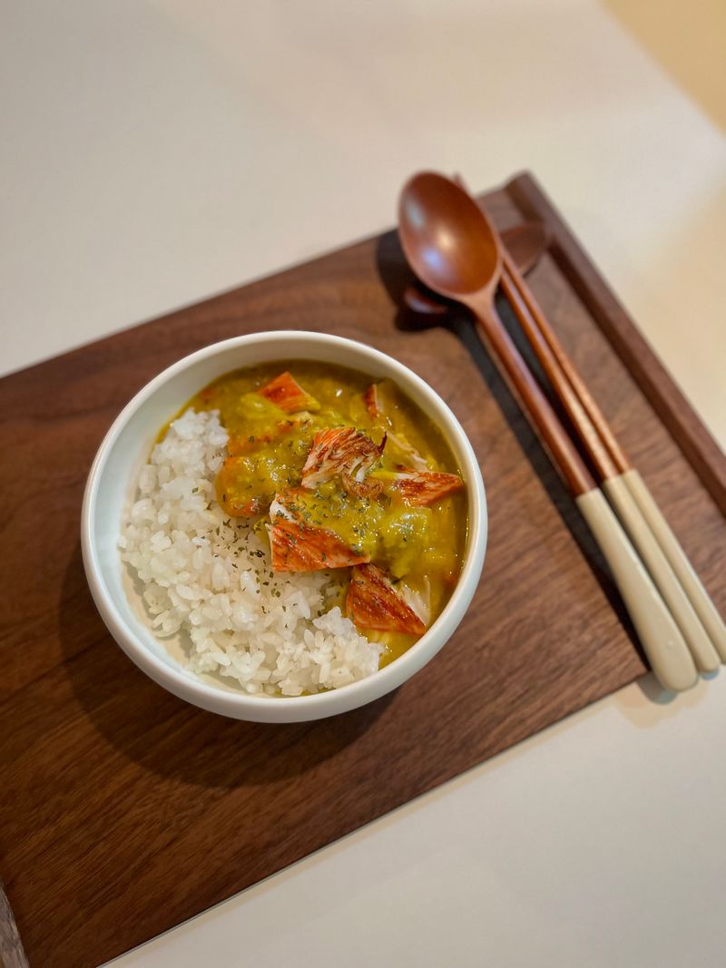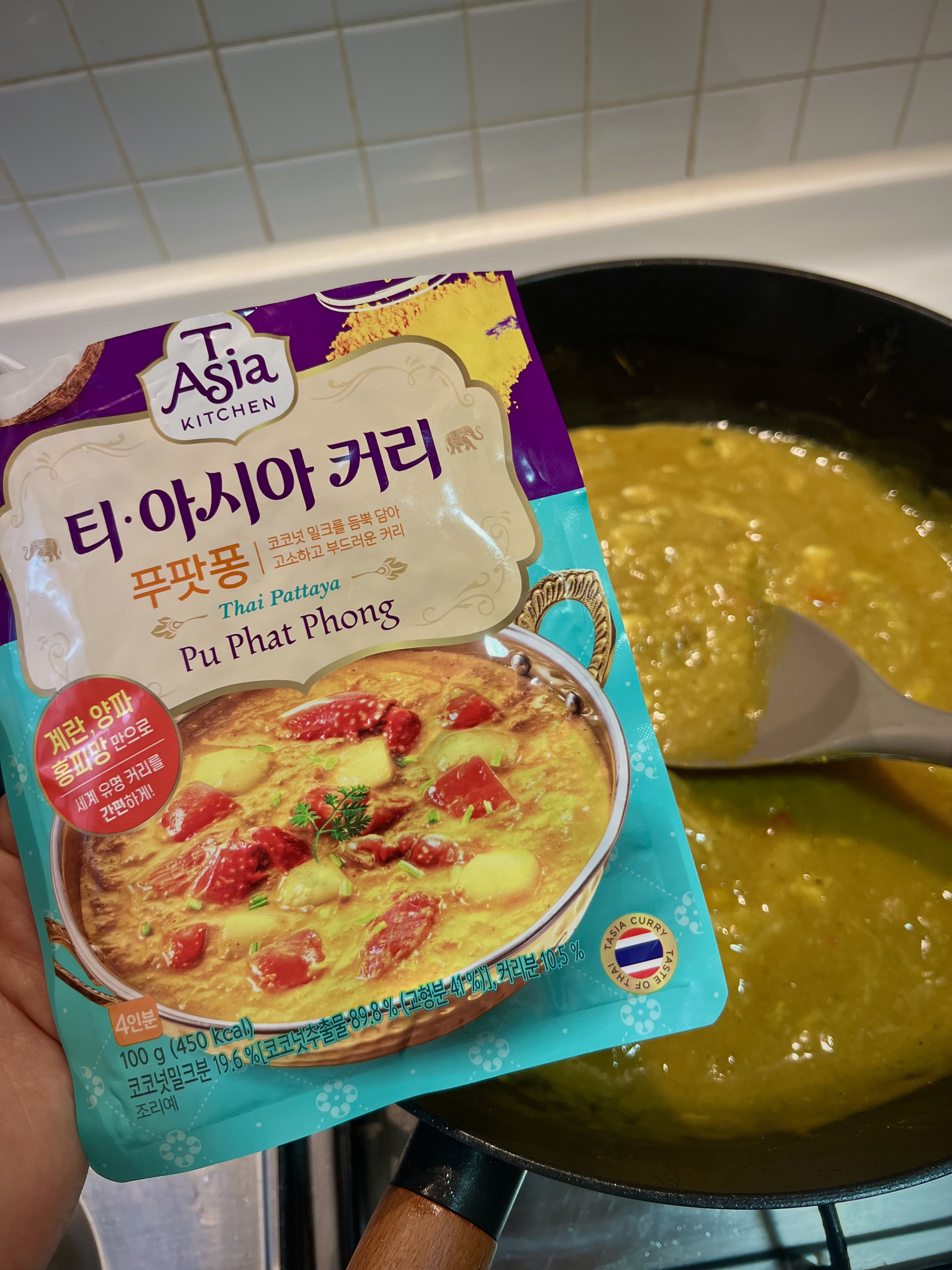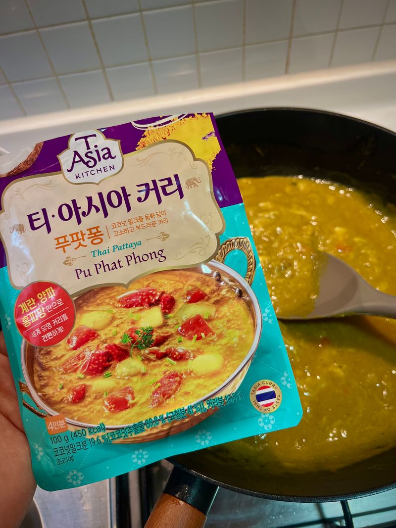 5. 밥 위에 푸팟퐁커리를 붓고 구워 둔 게맛살 올려주면 완-성✨