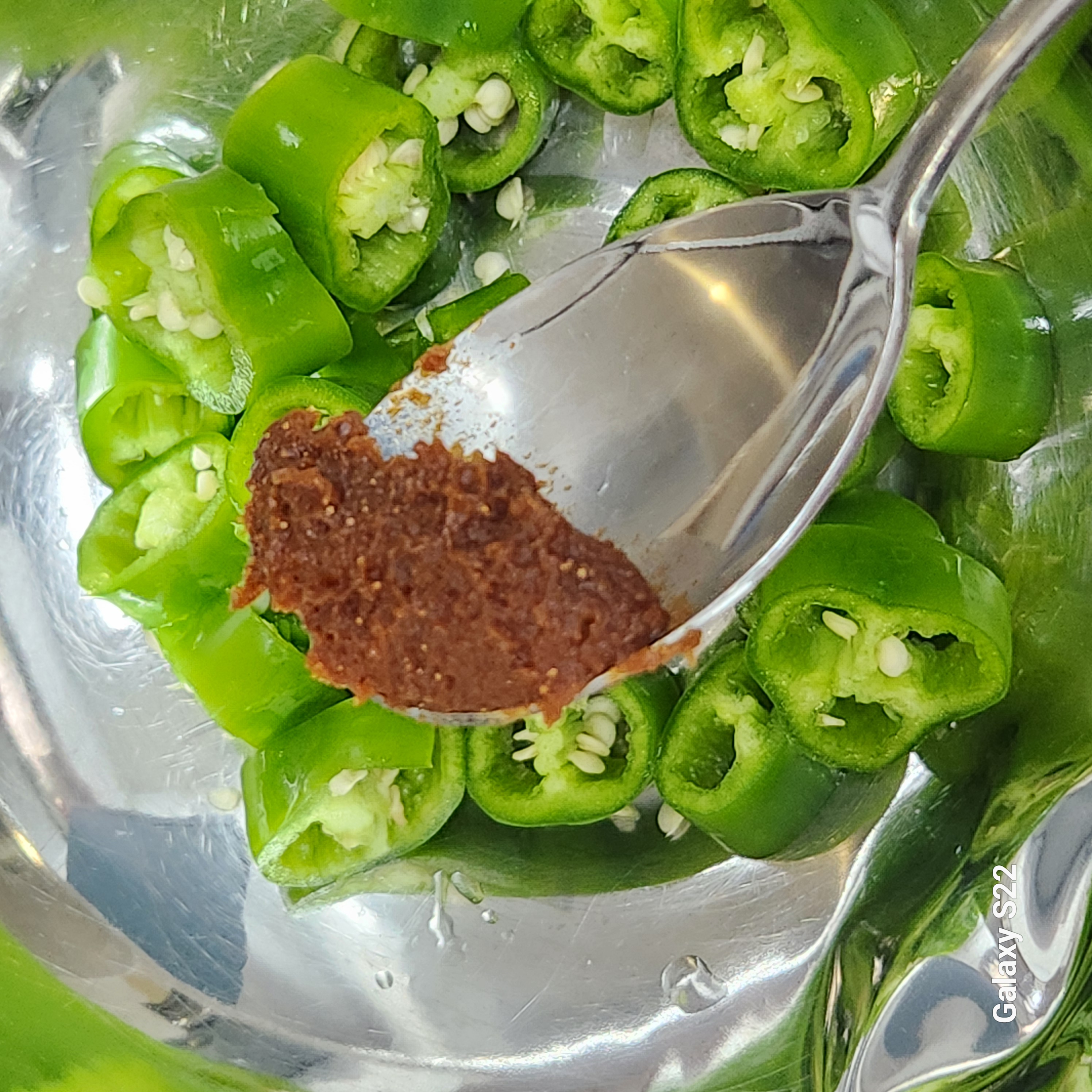 오이맛고추로 5분만에 완성한 고추무침이에요. 별다른 양념 필요없이 토장으로 조물조물. 약간 짜면 올리고당을 살짝 추가하면 되요. 여름에 더 잘 어울리는 초간단 밑반찬이에요~