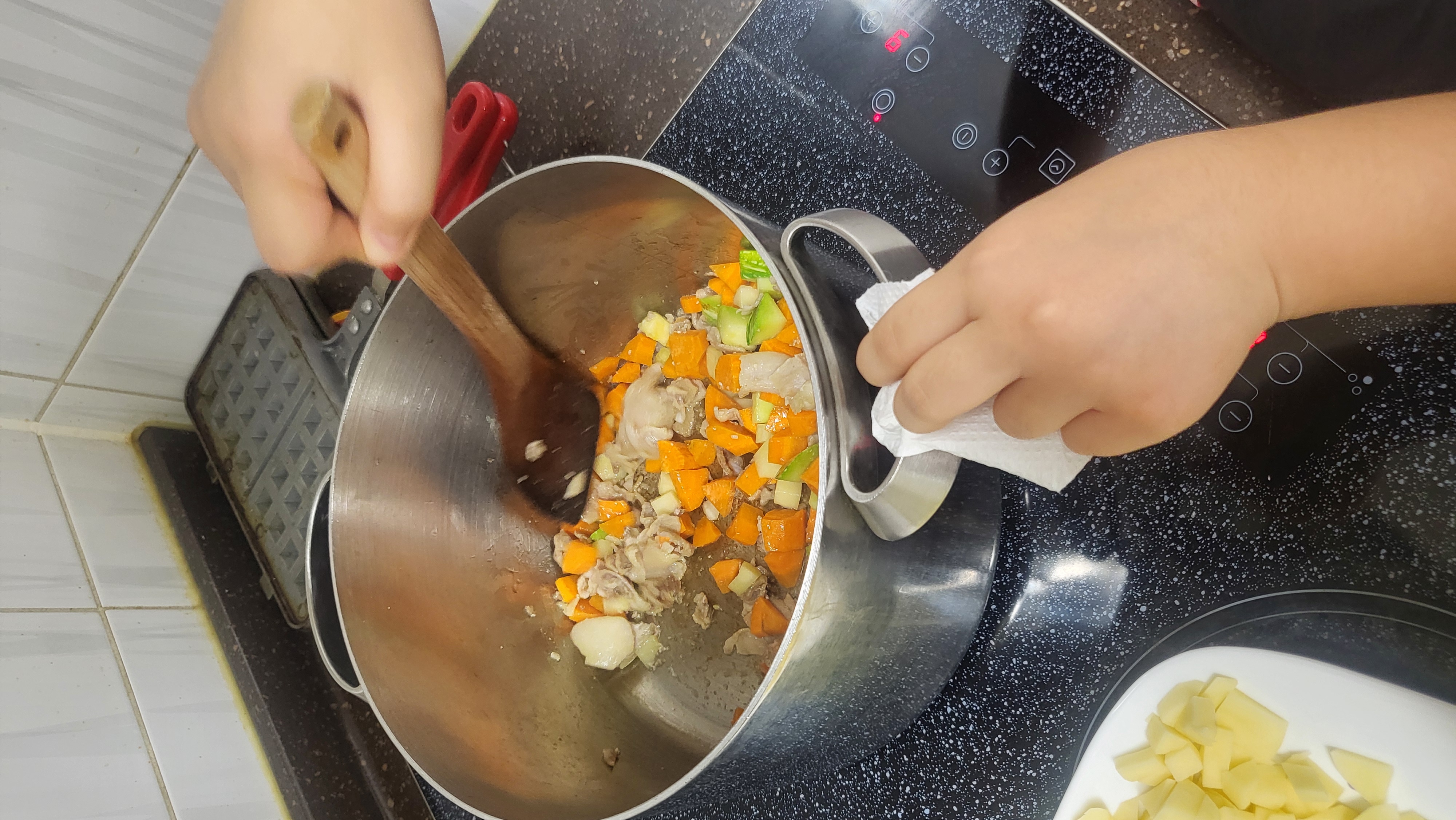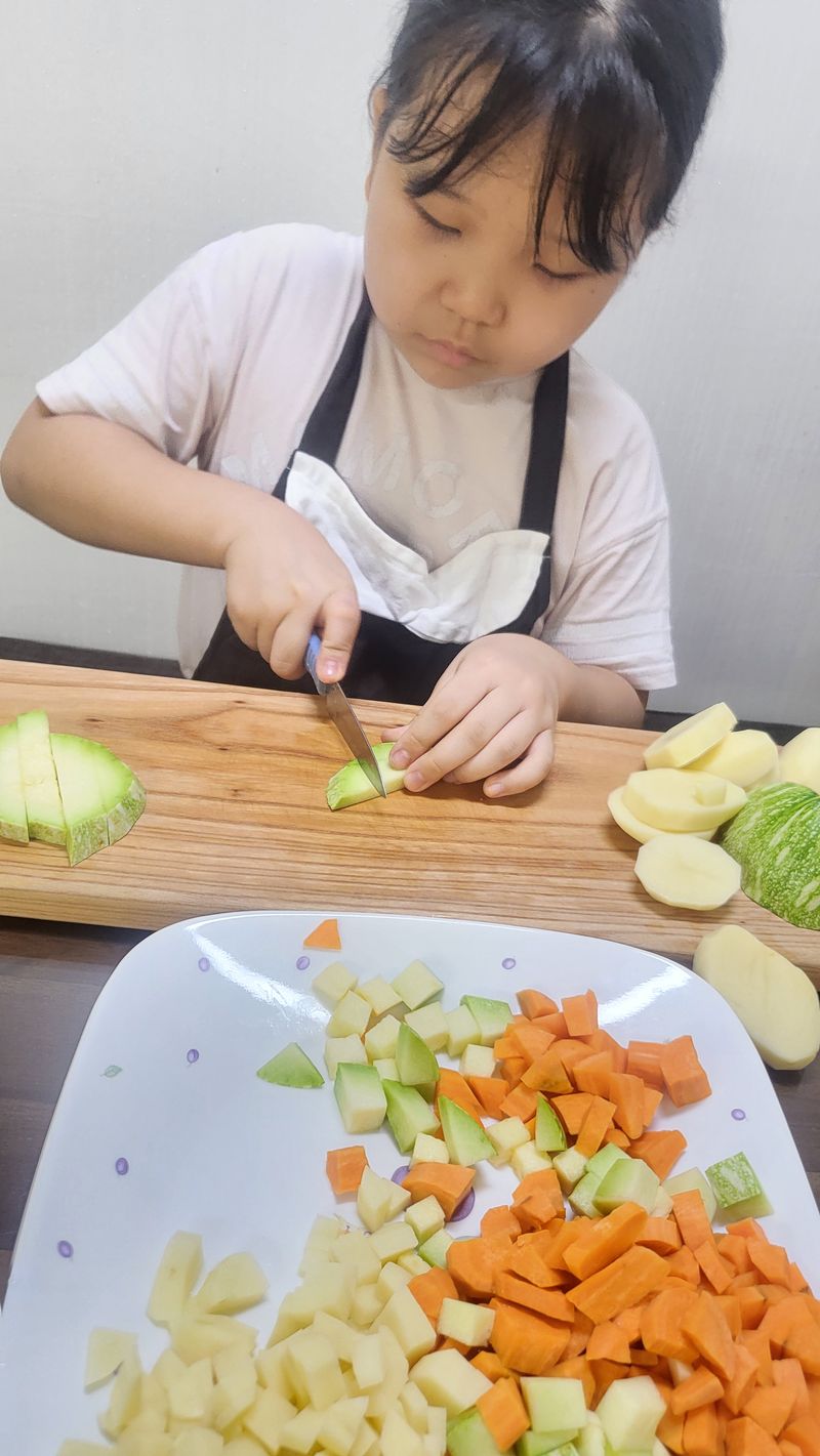 칼로 자를때 가작 딱딱했던 당근을 넣어야겠다고하네요~