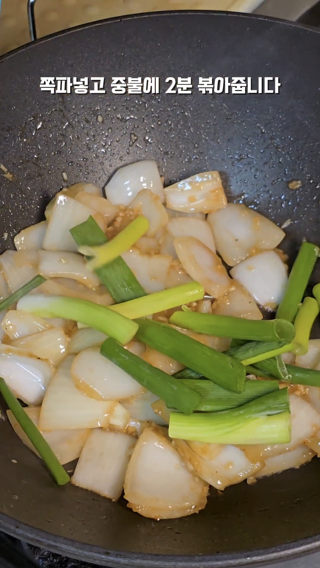 굴소스, 쪽파 추가해 중불에서 2-3분 더 볶아줍니다.