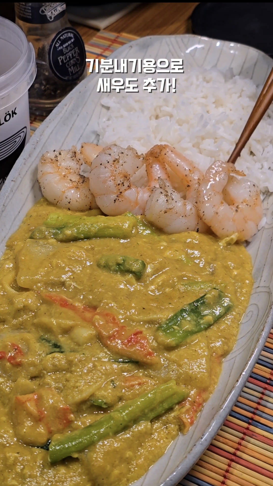 코코넛 밀크분까지 분말로 첨가되있어 코코넛 밀크를 따로 준비하지 않아도 부드러운 커리맛을 그대로 재현할 수 있습니다.
