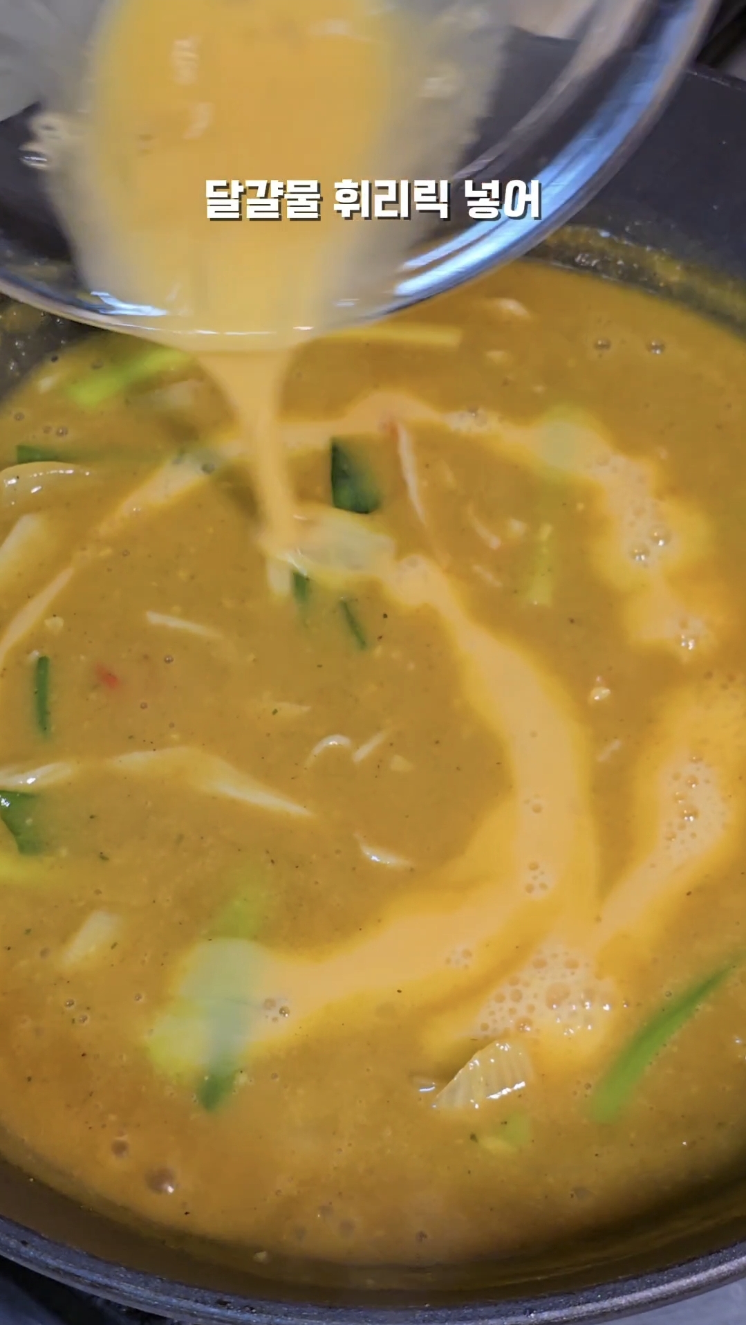 5. 몽글해지면 밥에 커리 부어 원하는 토핑추가해주세요.