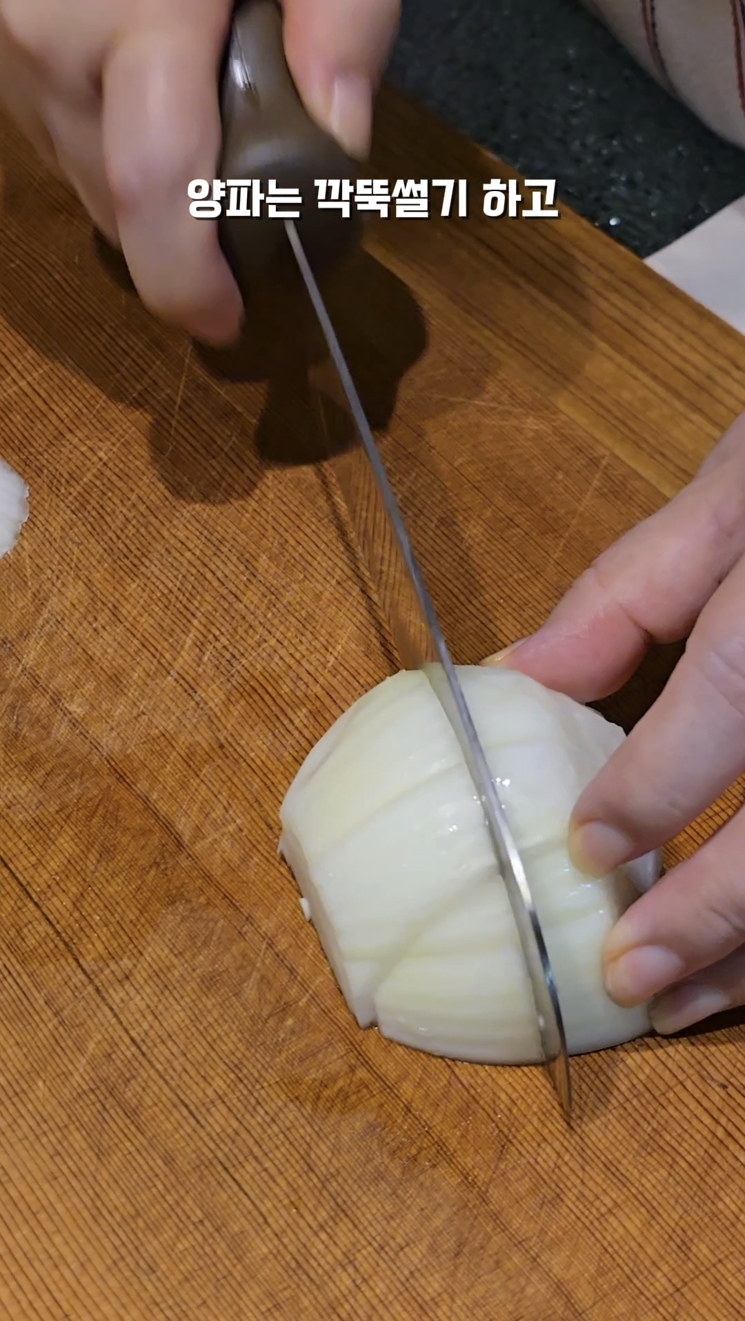 1. 양파는 깍둑 썰어주고, 쪽파는 4등분 해줍니다.