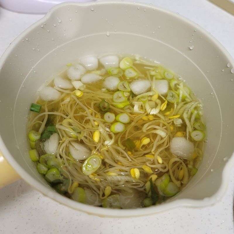 5.익은 콩나물에 기호에 맞게 뜨거운 물이나 찬물을 500ml 넣어주세요.