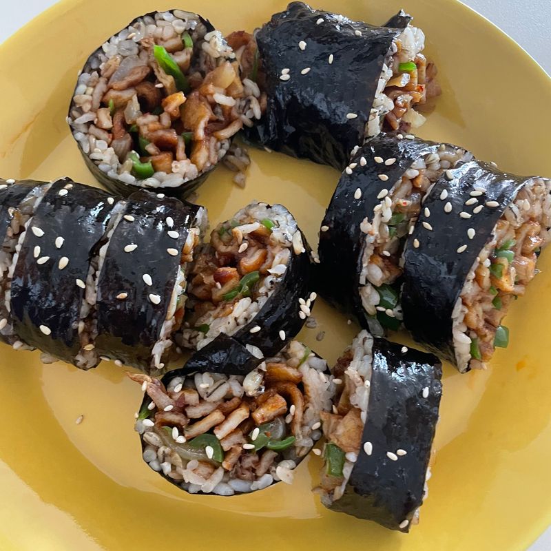 새미네부엌 레시피 보고 만들었어요 이거 정말 대추천 맛보장입니다 짭짤매콤 넘 맛,, 청양초연두 넣어서 땡초김밥같은 느낌도 나요 조만간 또 해먹으려구요 김밥 마는 건 아직도 어렵네요 ㅎㅎ