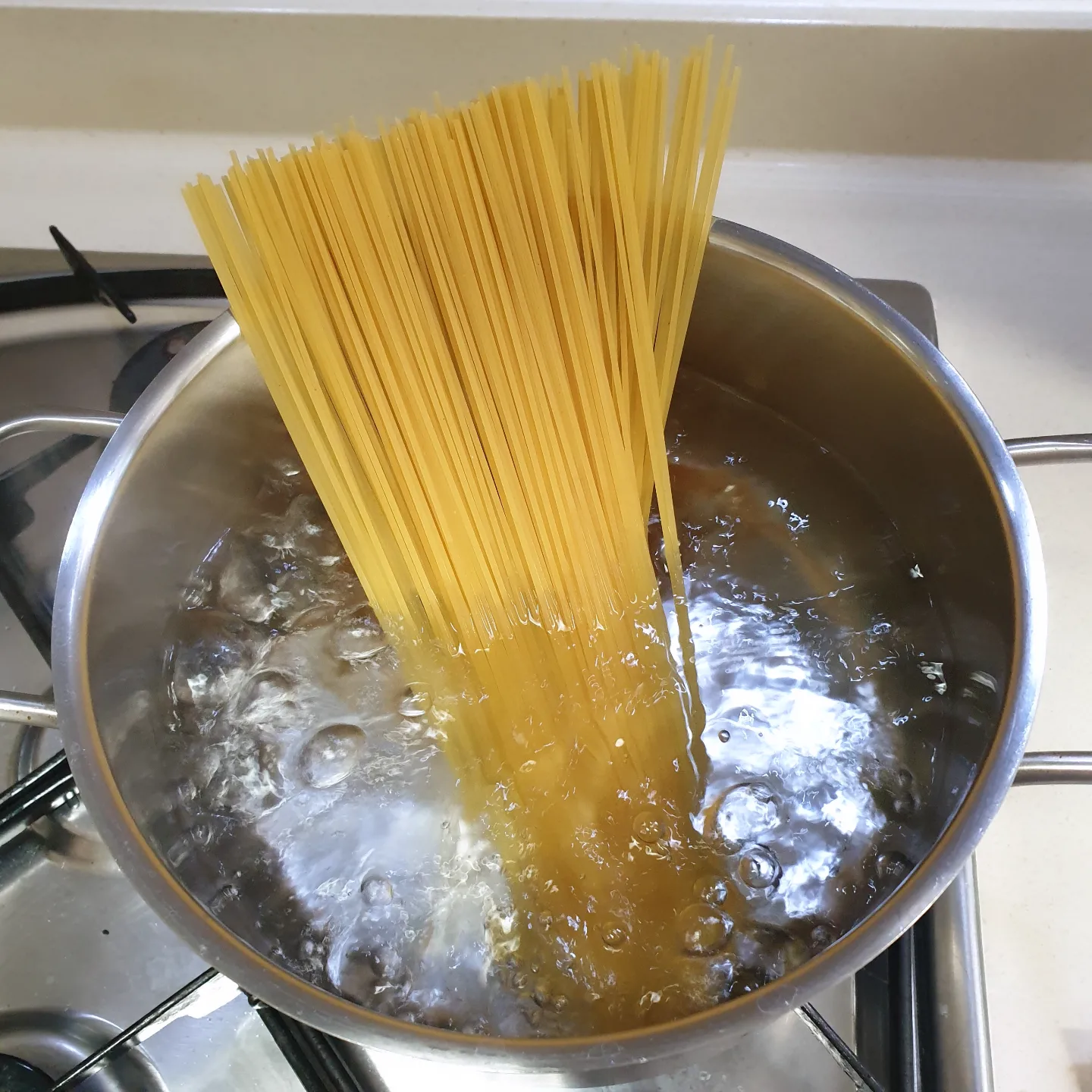 1.1인분기준으로 물끊으면 소금조금넣고 파스타면 넣어 9분, 파스타면 익으면 건져서 올리브유 뿌려놓기
