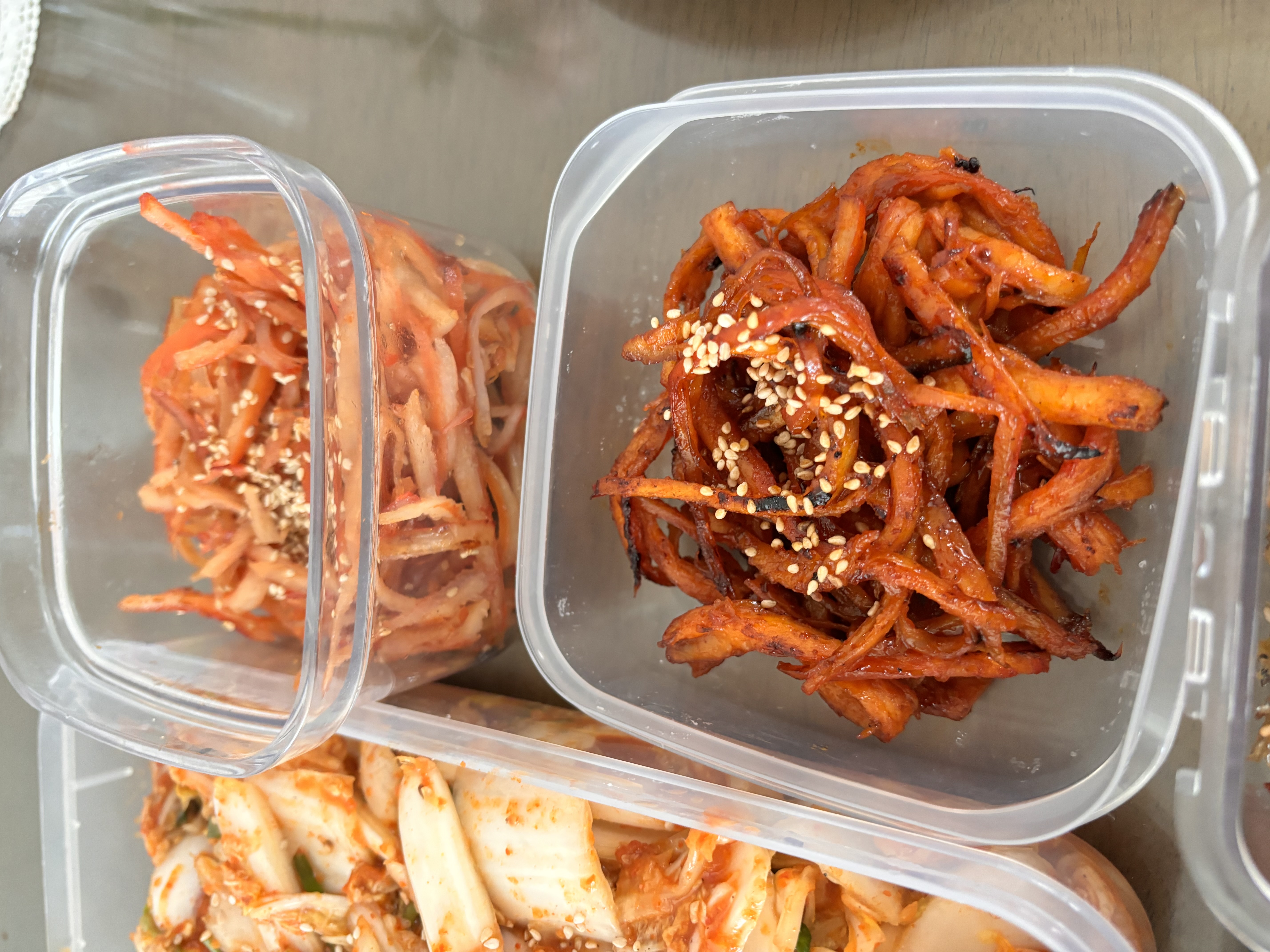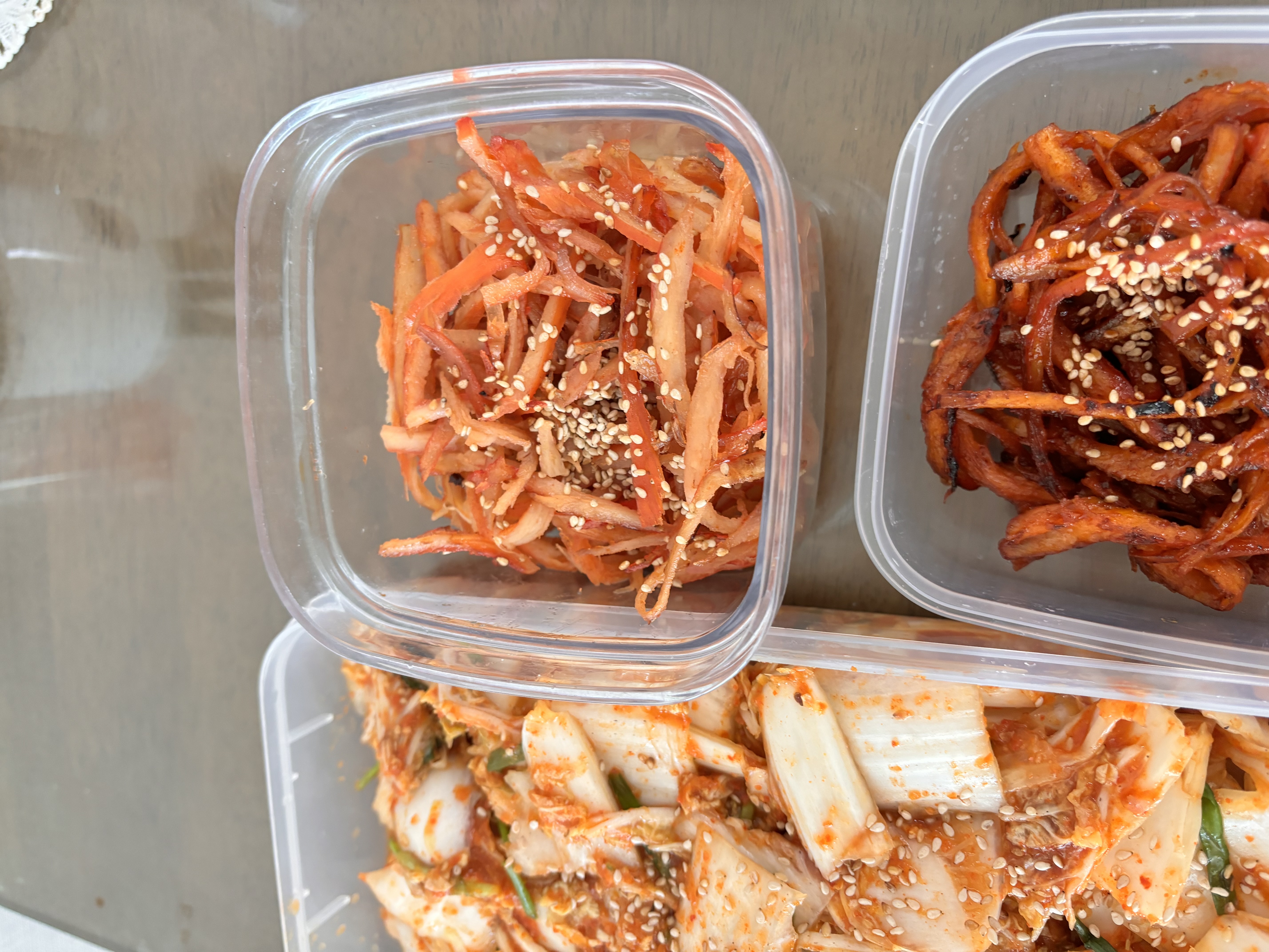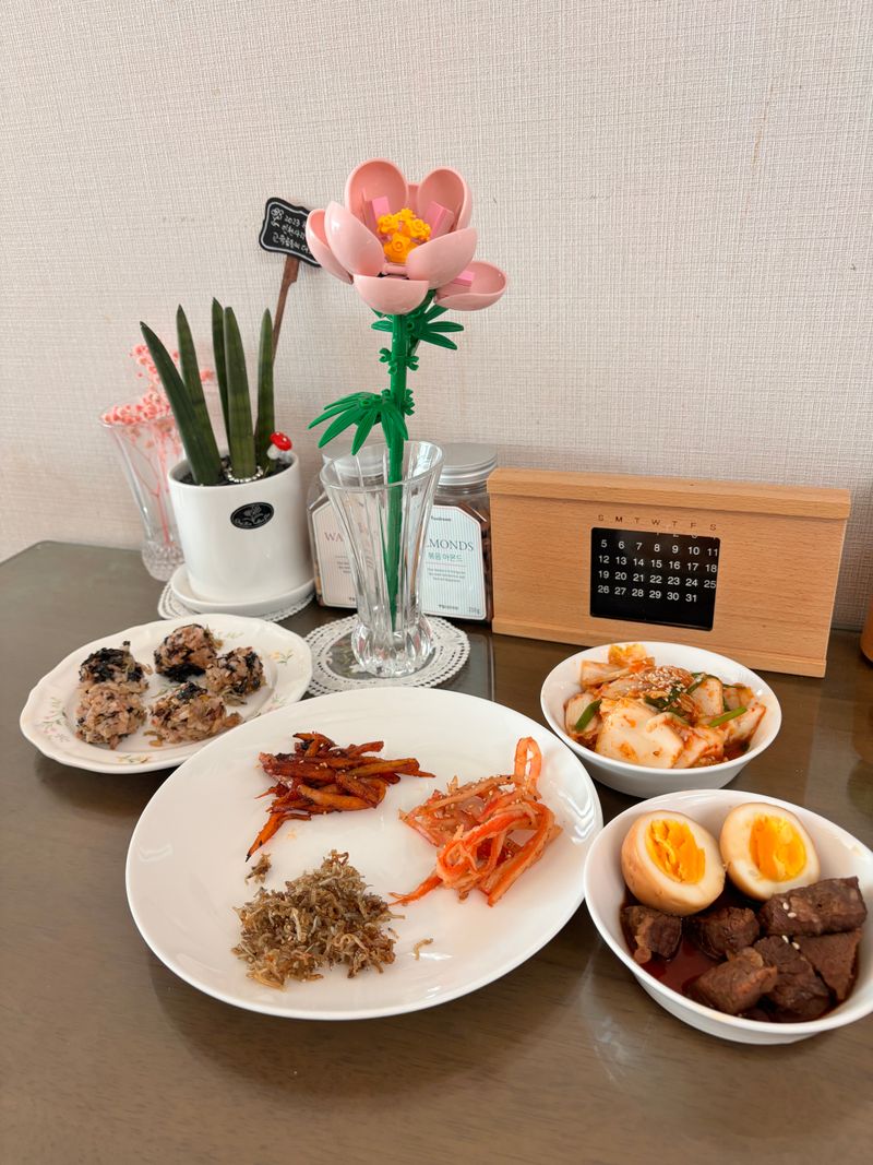 오늘 식단 : 달걀장조림, 김, 겉절이, 안매운진미채