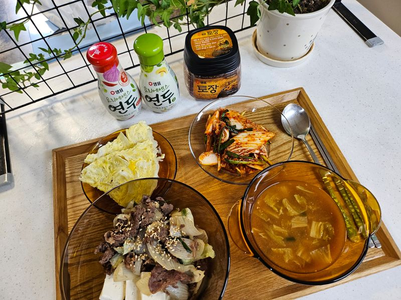 겉절이.배추된장국.달갈양배추찜전,소불고기덮밥