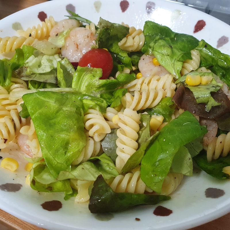 주말 브런치로 먹기 좋은 푸실리 샐러드 파스타입니다~ 샐러드에 삶은 푸실리 넣고 발사믹 소스만 둘러주면 금방 만들 수 있어요!