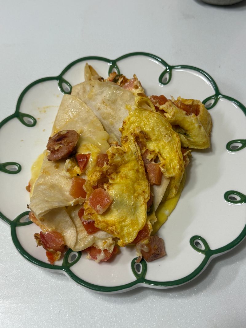 또띠아 + 계란 + 토마토와 소시지 + 치즈 등이 되어버렸지만…